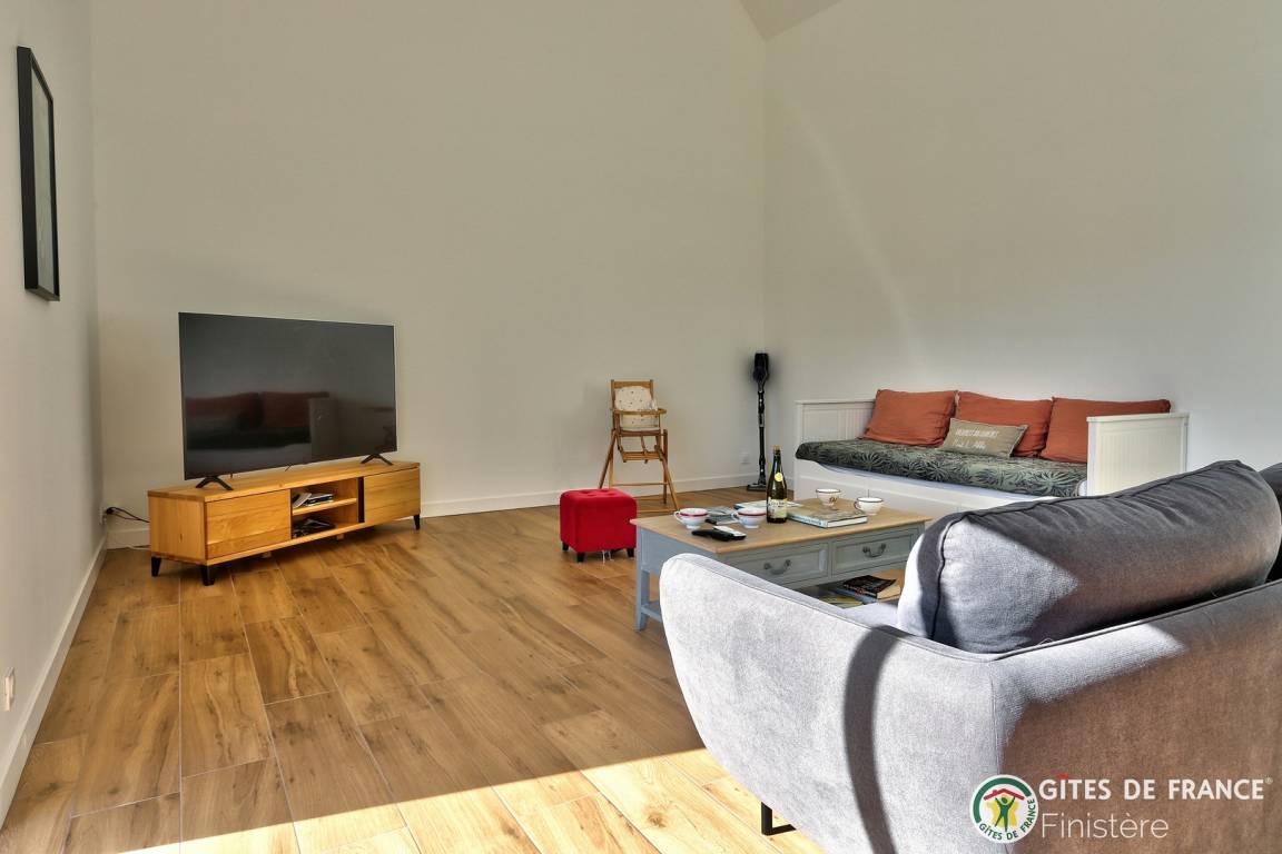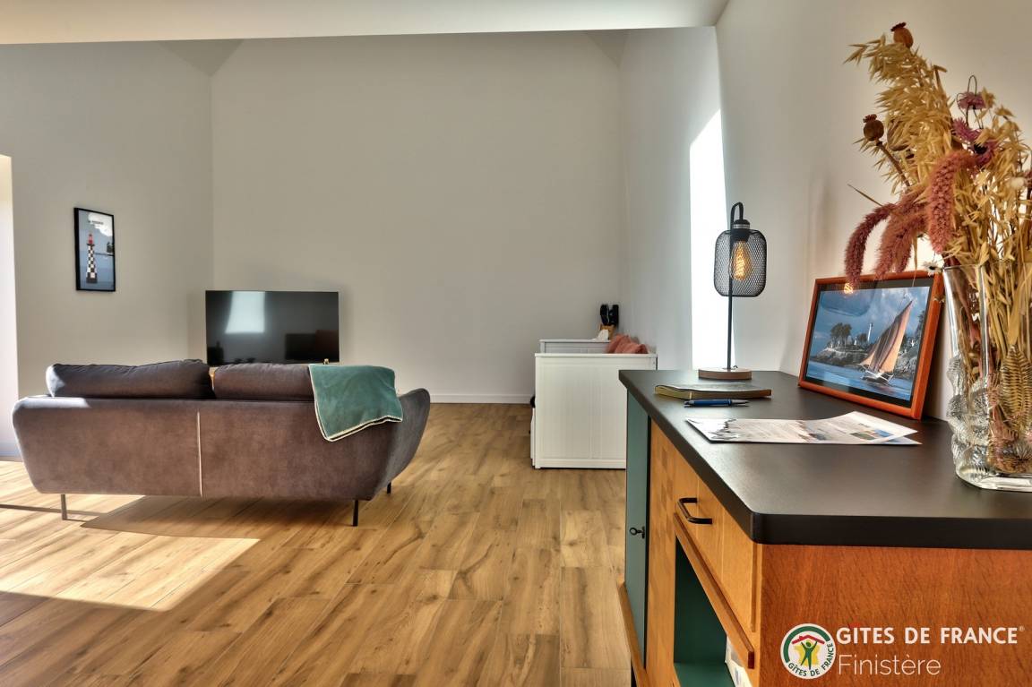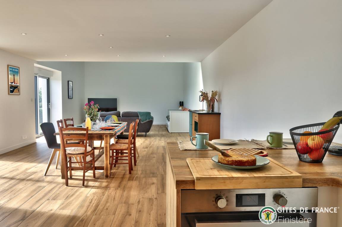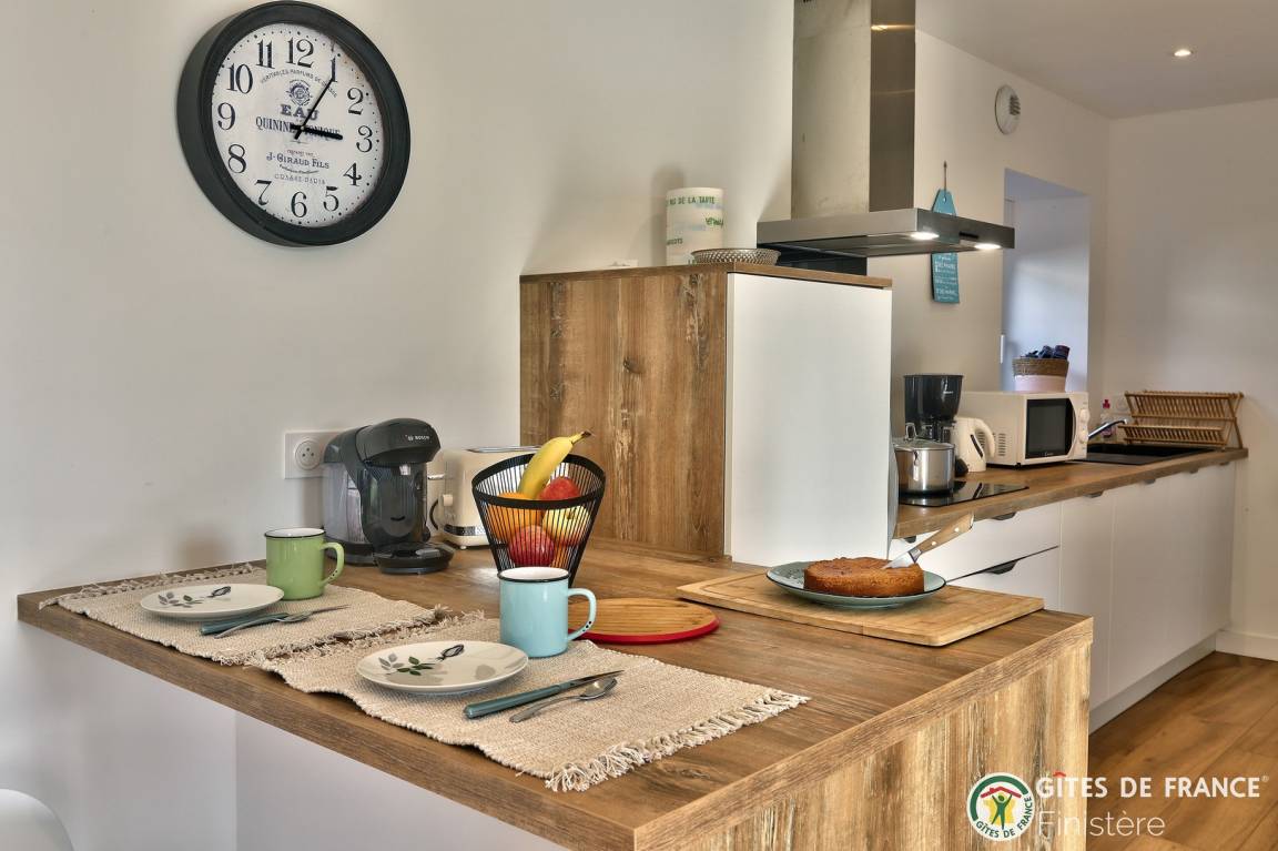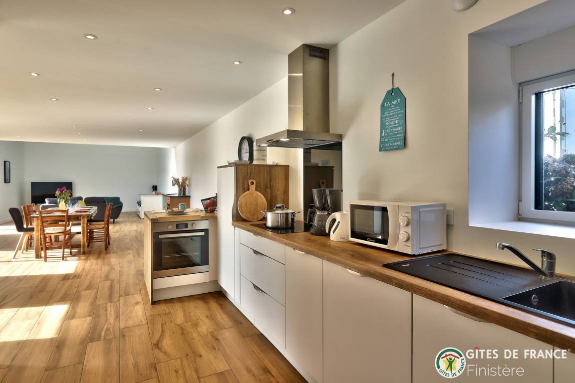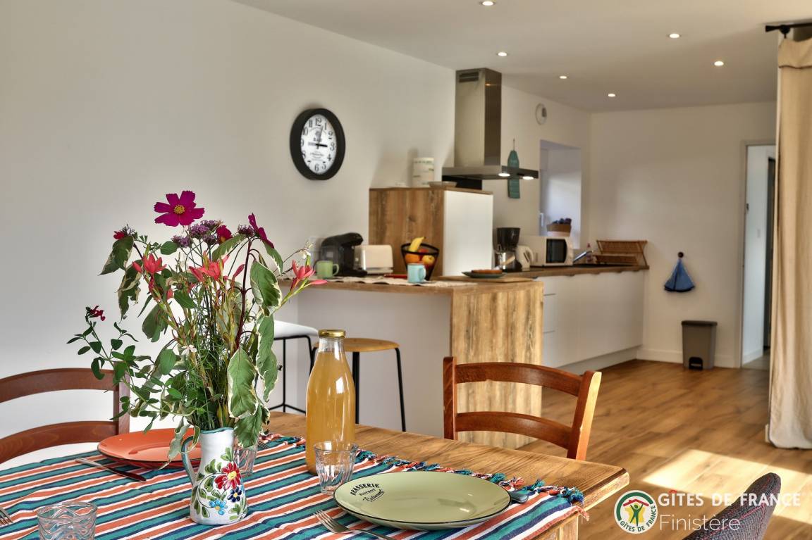 „Gîte quasi neuf, très bien rénové et très spacieux (immense pièce à vivre). Nous avons été accueillis chaleureusement et généreusement par le propriétaire très sympathique. Un petit problème avec la fibre, résolu rapidement, pas d'inquiétude, ça fonctionne très bien maintenant. Emplacement idéal pour rayonner dans ce beau pays bigouden.“