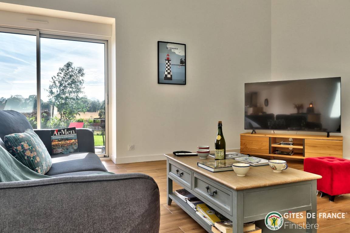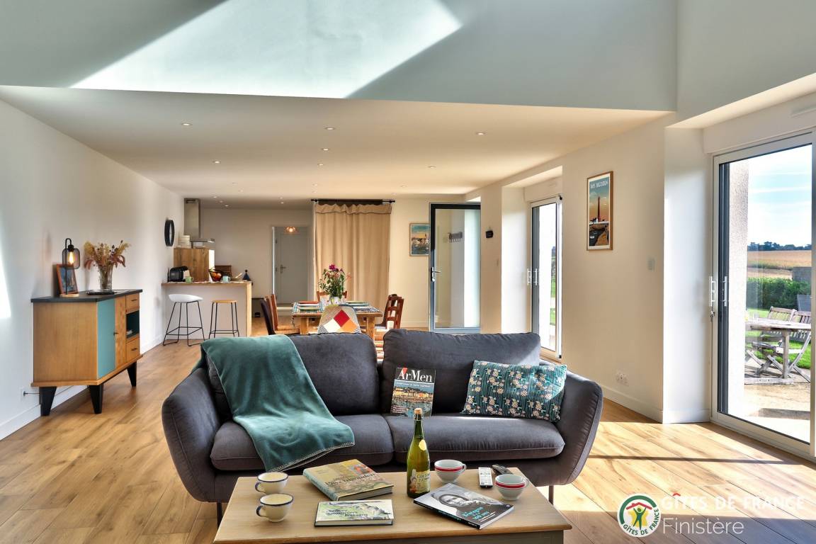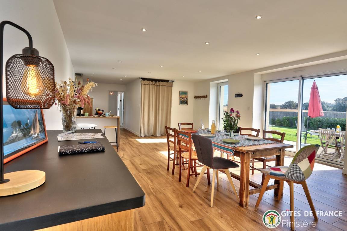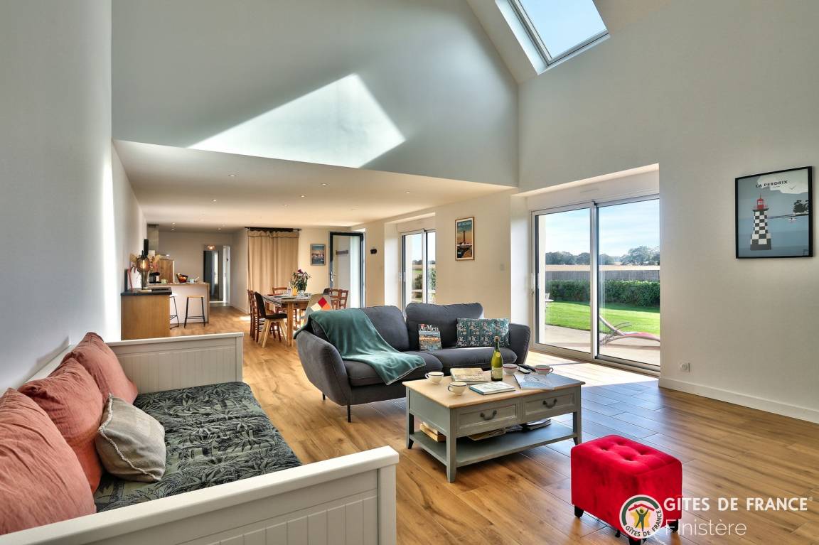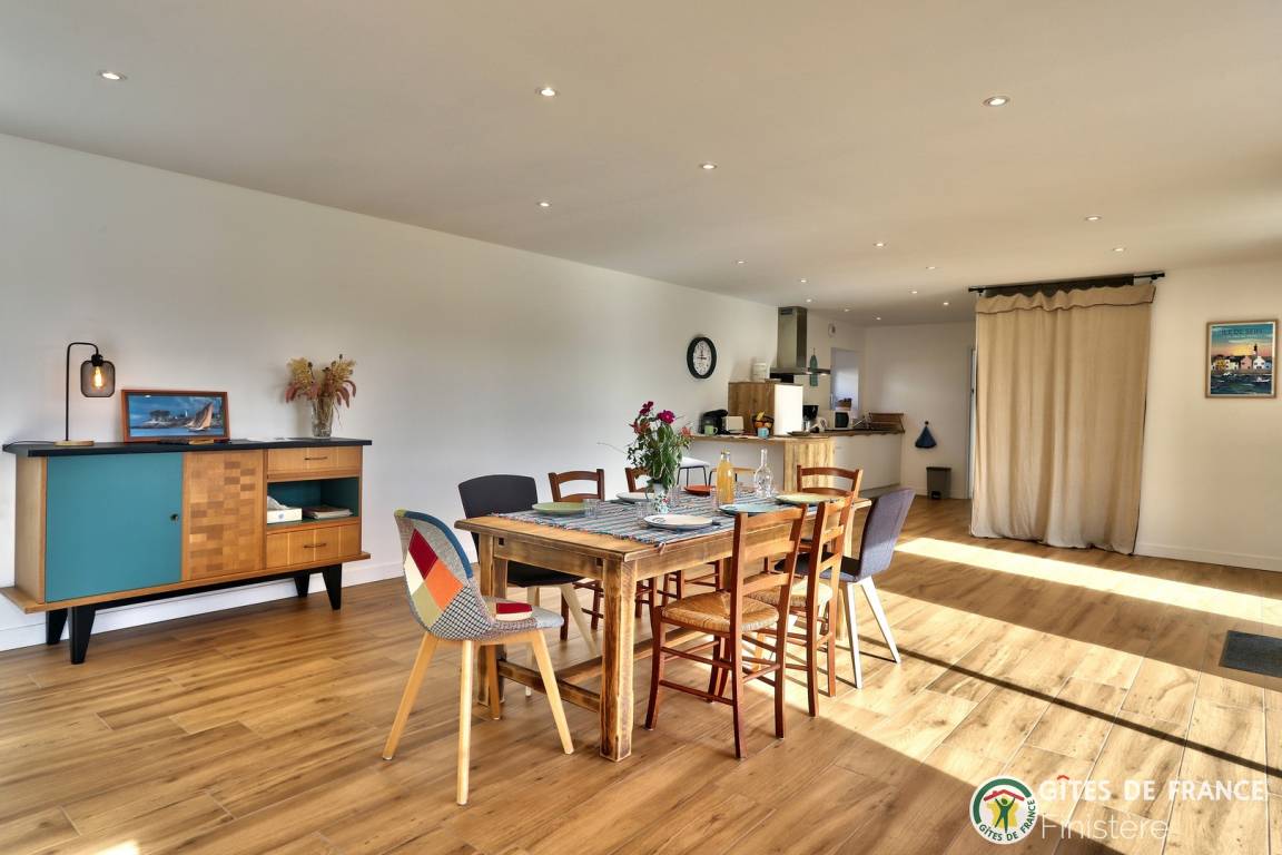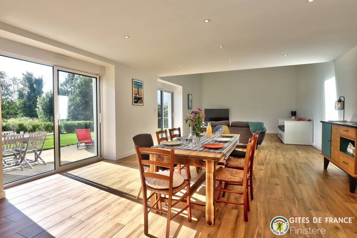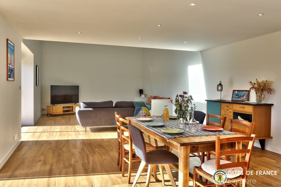 „Gîte quasi neuf, très bien rénové et très spacieux (immense pièce à vivre). Nous avons été accueillis chaleureusement et généreusement par le propriétaire très sympathique. Un petit problème avec la fibre, résolu rapidement, pas d'inquiétude, ça fonctionne très bien maintenant. Emplacement idéal pour rayonner dans ce beau pays bigouden.“
