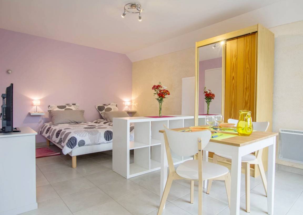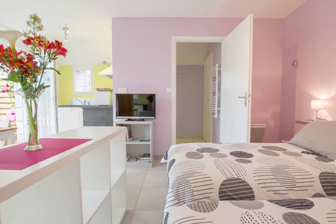 „Studio trs confortable, hygiéne impeccable, trs bel environnement, calme. Nous avons apprcié de rentrer après nos journées de visite. Echange agréable avec les propriétaires.“