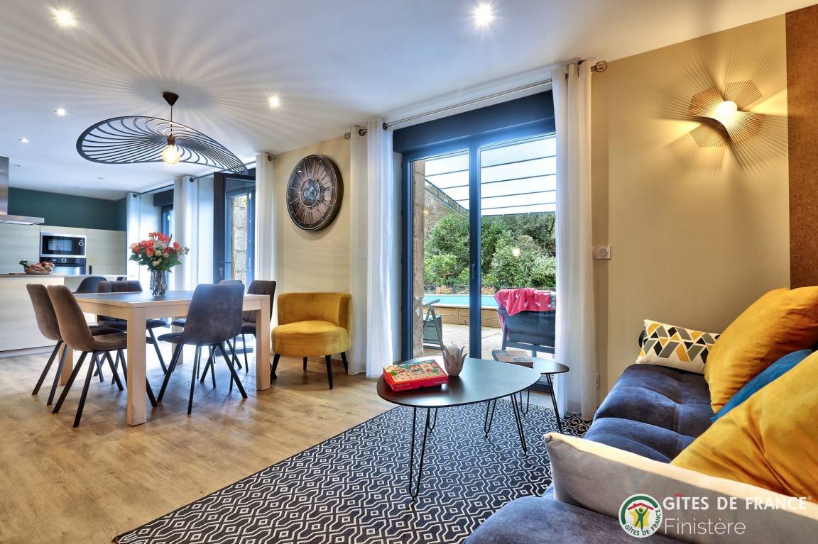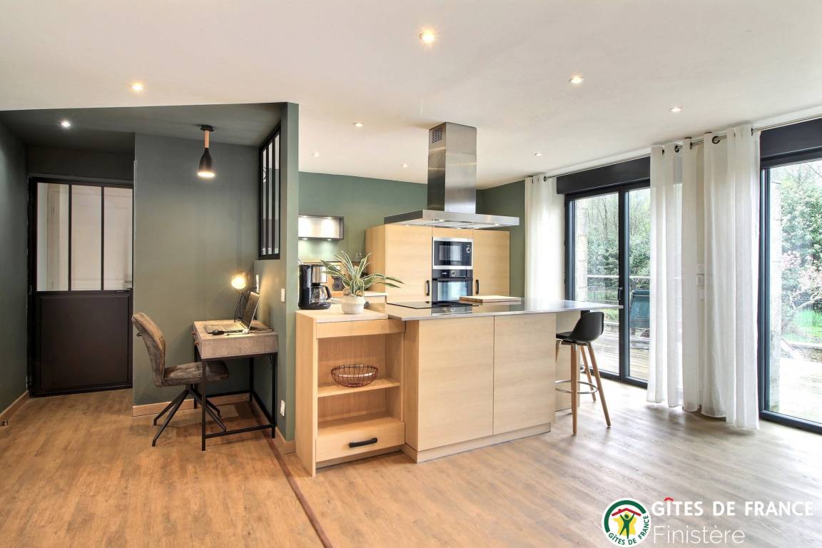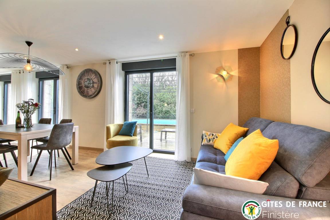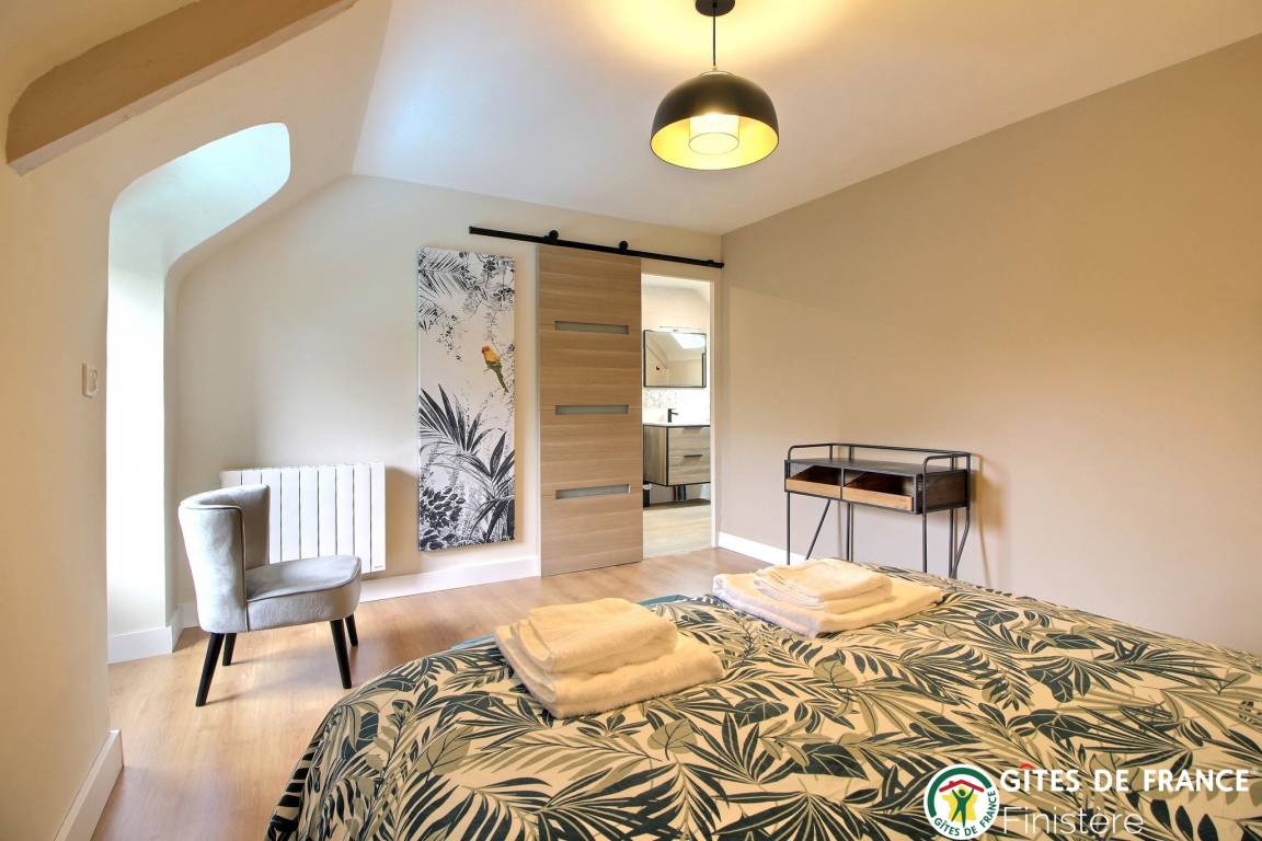 „Il n'y a que des raisons pour recommander le Gîte de l'Etang. Très bien conçu, avec des espaces indépendants (idéal pour un séjour en famille ou entre amis), très bien équipé et d'une propreté impeccable, le gîte bénéficie d'une très jolie situation avec une belle terrasse donnant sur un pré occupé par deux ravissantes juments, lui-même bordé d'arbres et d'un étang. Au calme et sans vis-à-vis, tout proche des Roches du Diable, et à une demi-heure des plages du Finistère Sud, c'est un endroit idéal pour recharger ses batteries (il y est d'ailleurs aussi possible de recharger son véhicule). Pourtant, ce qu'on en retient vraiment, c'est la gentillesse et les attentions de Florence et Gildas, hôtes aussi discrets qu'efficaces, et pourvoyeurs à l'occasion d'excellents légumes de leur jardin, et guides d'une bucolique promenade en calèche. Bravo pour tout !“
