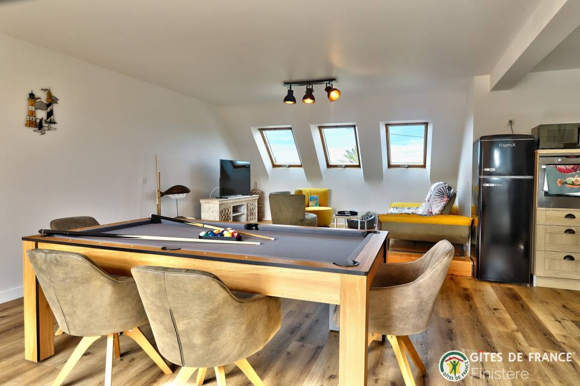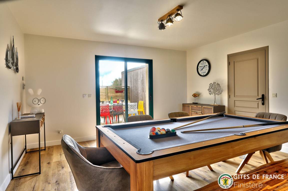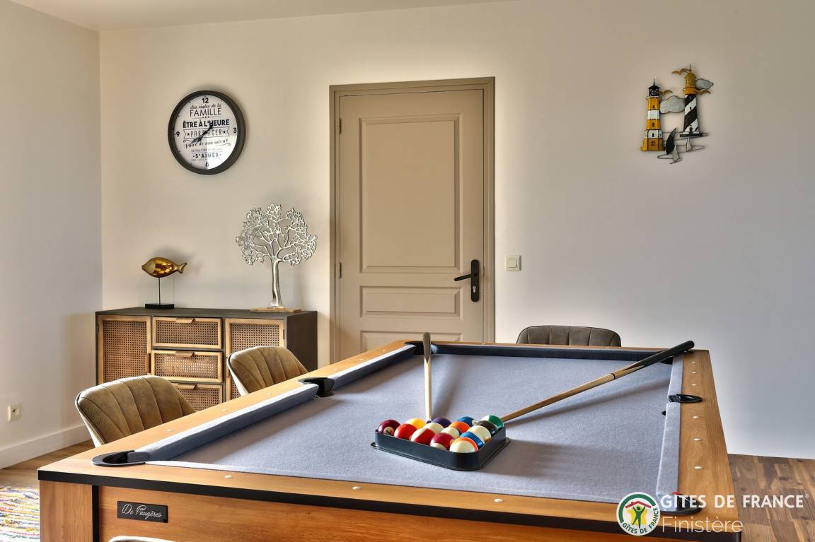„Séjour très agreable dans ce beau gite idealement situé avec vue sur la mer. De nombreux points d'interêt à proximité dont la belle plage de St Jean du Doigt. Les ados ont apprecié le billard tout particulièrement ainsi que le BBQ.“