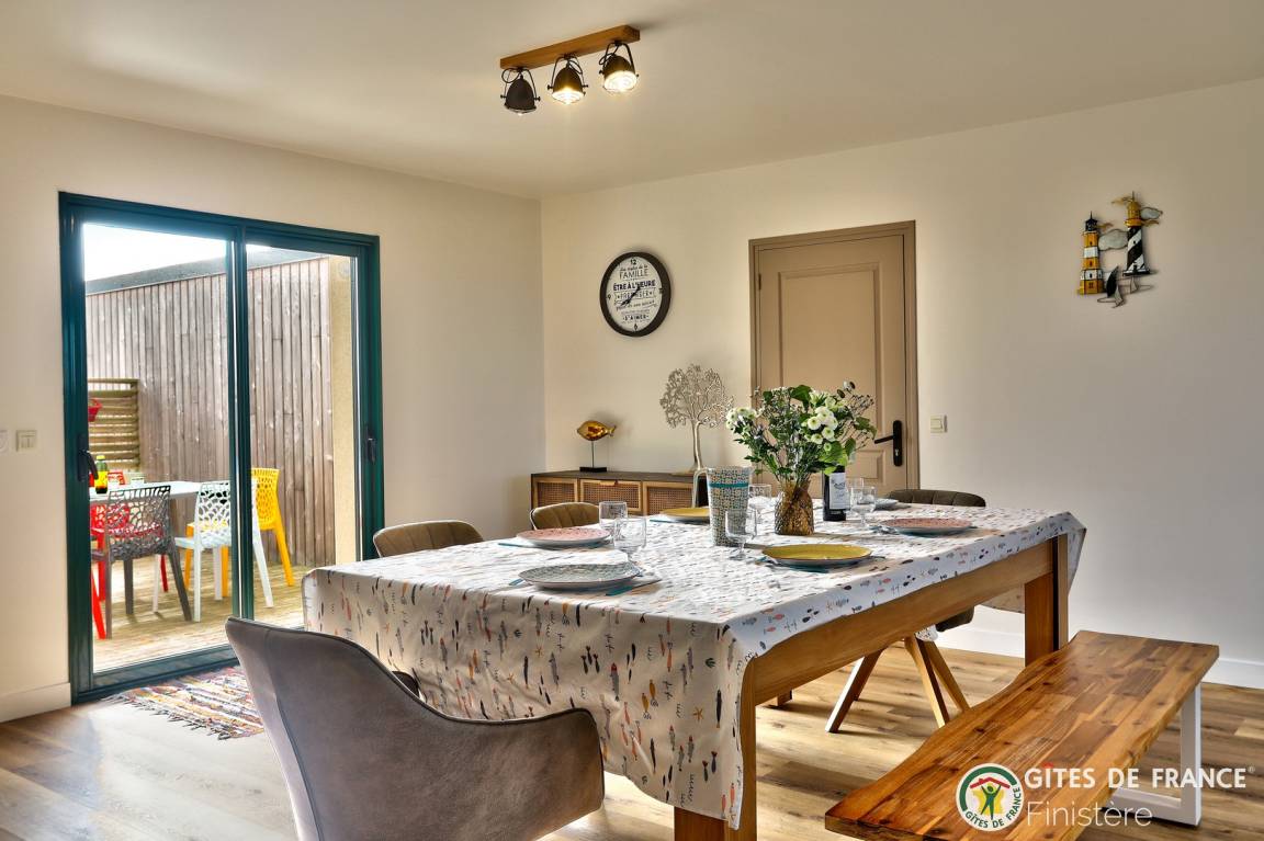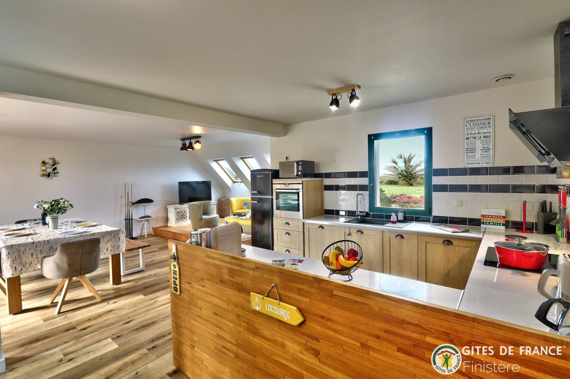 „Gîte très bien tenu avec tout ce qu'il faut pour s'occuper à l'intérieur comme à l'extérieur (plages et très bons restaurants dans les environs). Localisation propice au calme avec des airs de bout du monde, face à l'océan.“