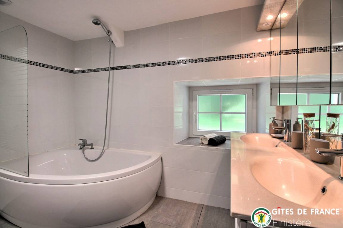 „Nous avons passé un excellent séjour dans ce gîte spacieux, confortable, propre, bien équipé. La literie est impeccable, le grand jardin bien entretenu. L'environnement est calme, verdoyant proche de la mer, du musée rural, du bourg. La propriétaire Catherine Le Meur est agréable, à l'écoute, arrangeante, beaucoup de sollicitude et de bienveillance. Elle a le souci du bien-être des hôtes. Nous y retournerons et recommandons ce gîte aux amis.“