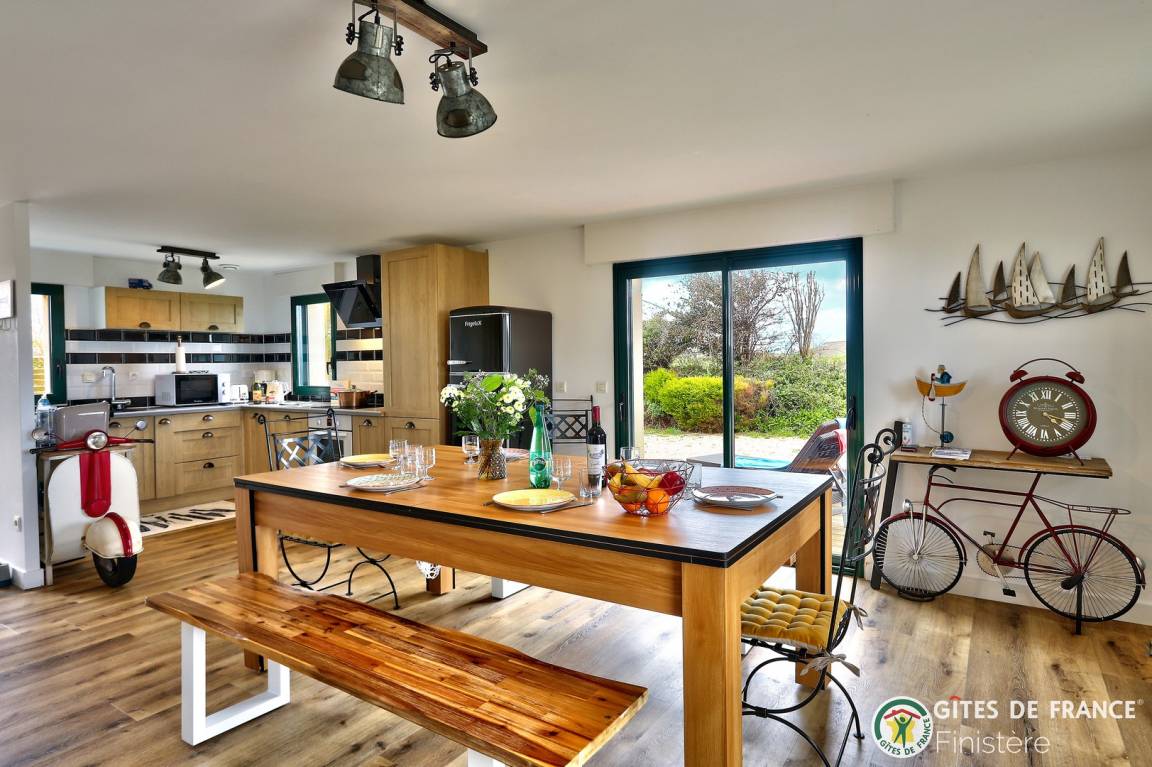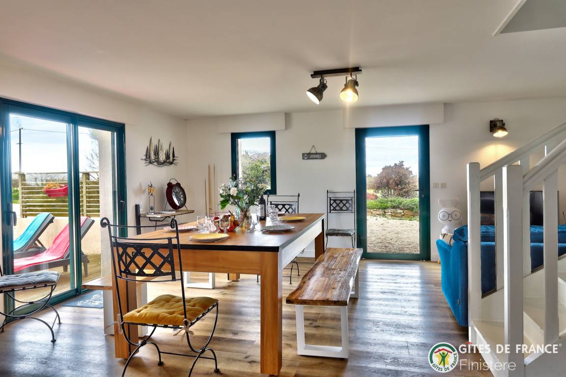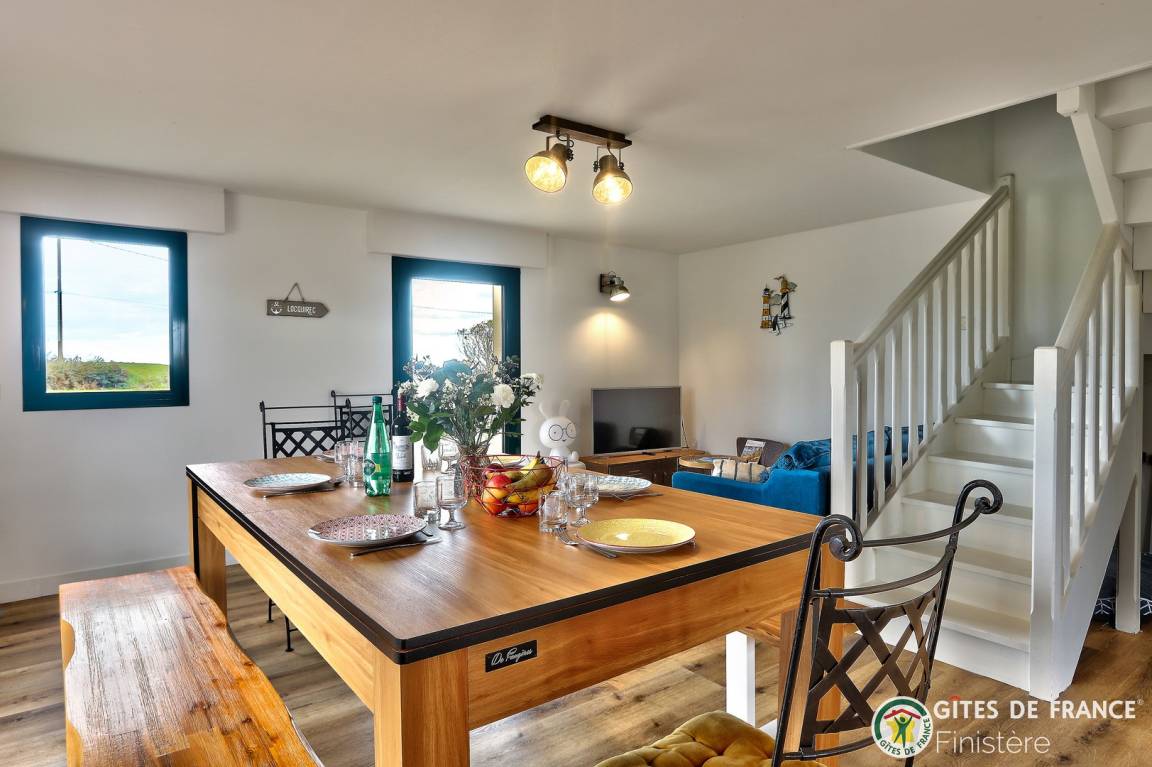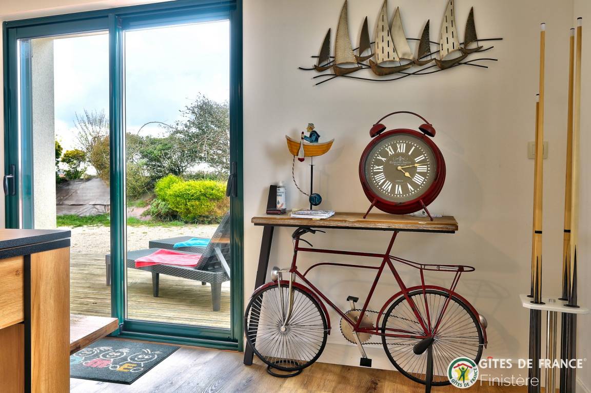 „Nous avons passé un excellent séjour au gîte Ty Man. Nous avons été accueillis par Karine avec une bouteille de cidre et du chocolat !Tout a été pensé pour que petits et grands (le chien aussi) passent des vacances reposantes et ludiques (avec la piscine et le billard). Un vrai bonheur de se lever chaque matin avec la vue sur la mer.“