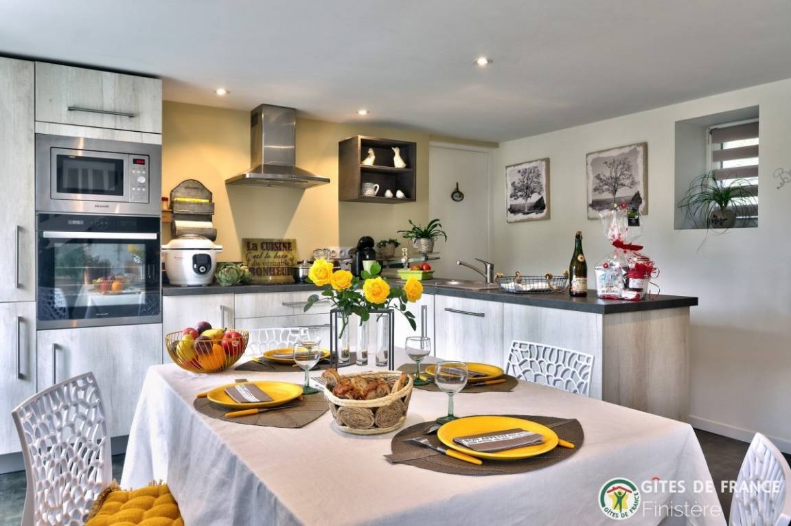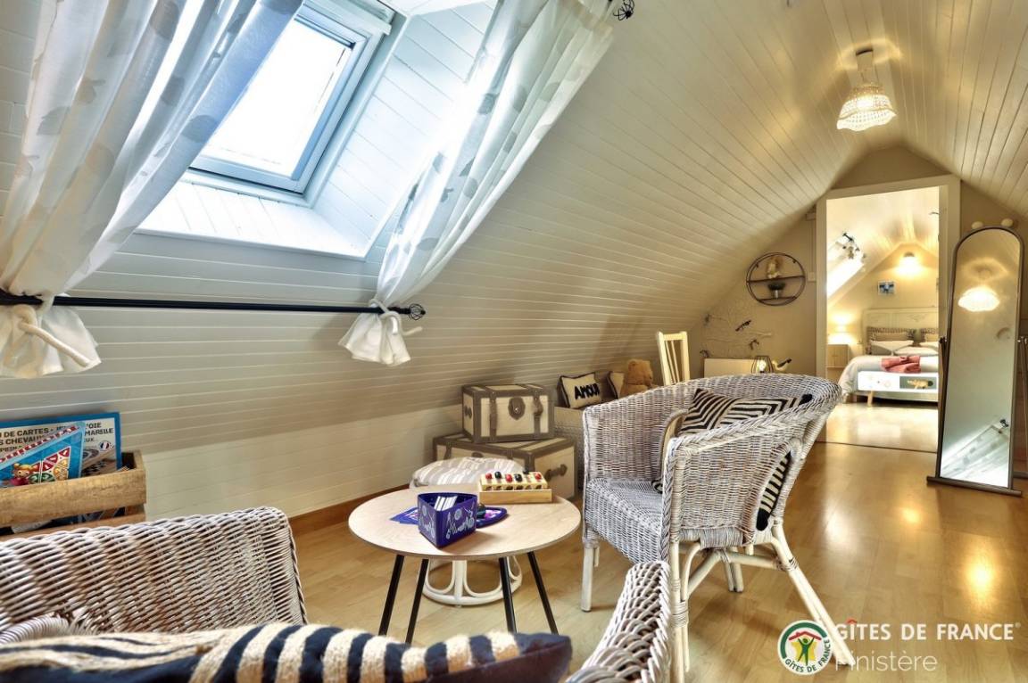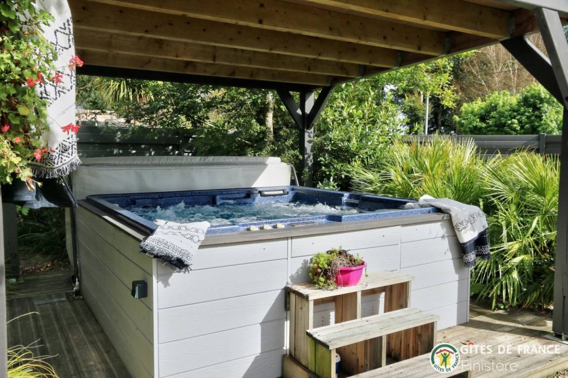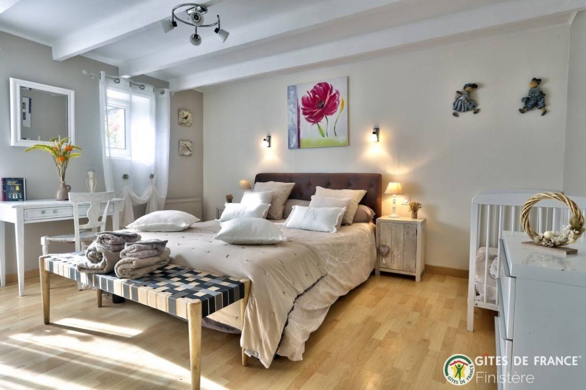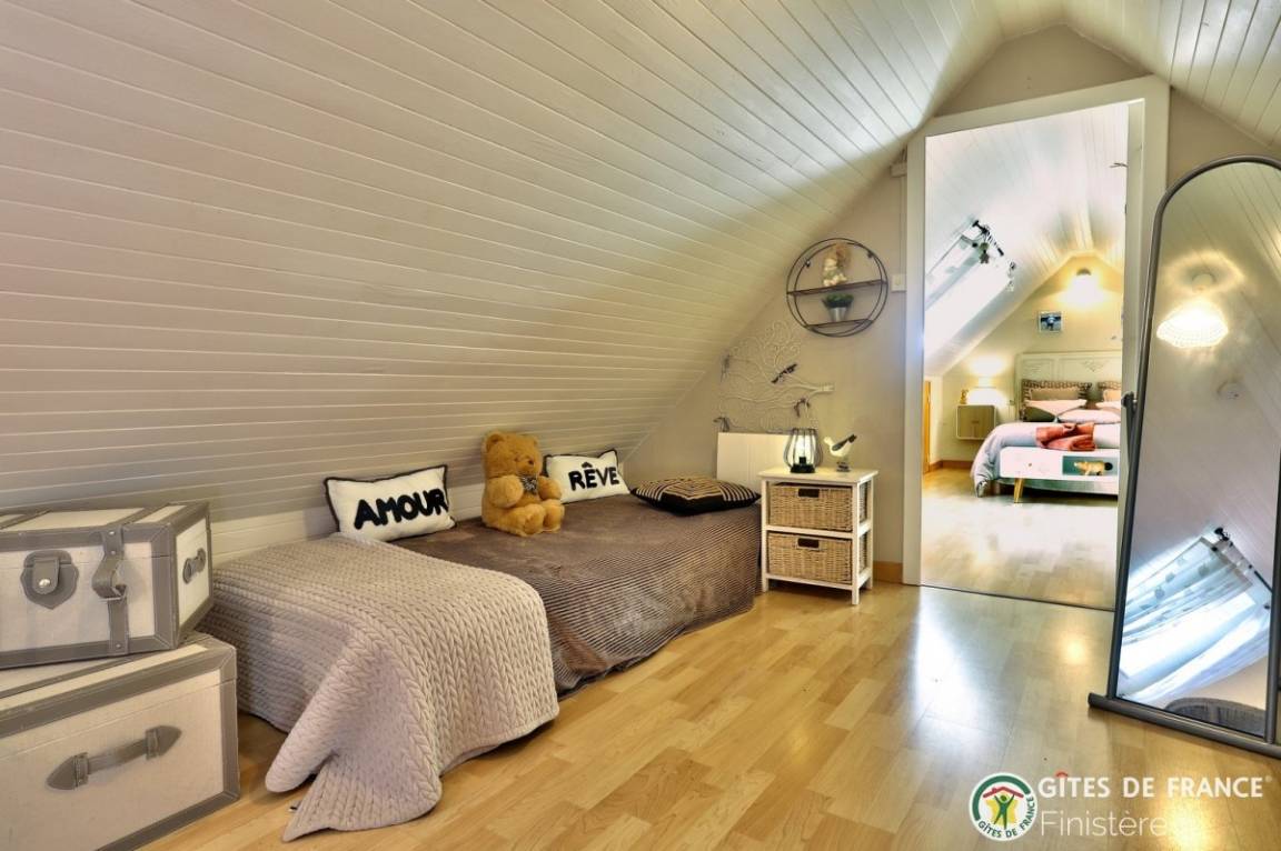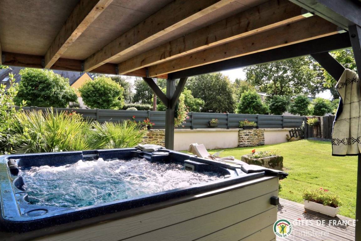 „Gîte très agréable bien meublé et bien placé pour visiter le Finistère. Accueil chaleureux et vraie tranquillité. l… pas un bruit !L’étage est cozy et les enfants ont adoré. Le salon est agréable le soir, et nous avons apprécié la petite terrasse. Le gîte est propre, et le petit cadeau d’accueil était charmant. Merci à nos hôtes !Le gîte est bien équipé (jacuzzi barbecue cuisine); il manquerait seulement une friteuse et quelques ustensiles de cuisine (couteaux et pince barbecue) ainsi que de quoi étendre les serviettes dans la salle de bain. La literie est très ferme, c’est une question de goût mais cela a été inconfortable pour nous (40 ans…) Il y a eu un épandage de fumier juste à côté donc une odeur horrible pendant 48h et beaucoup beaucoup de mouches. Mais notre hôte n’y peut rien, c’est juste pas de bol !“