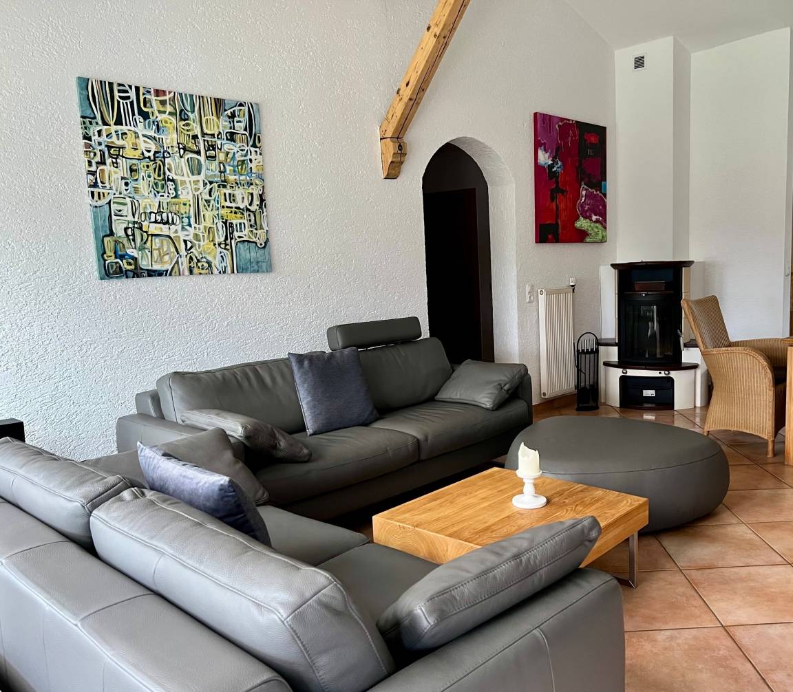 In unserem Bungalow schafft der wunderbar offene Wohn-Küchen- und Essbereich ein großzügiges Wohnerlebnis. Der Holzkaminofen erzeugt eine behagliche Atmosphäre in der kalten Jahreszeit.