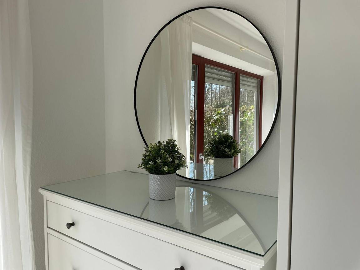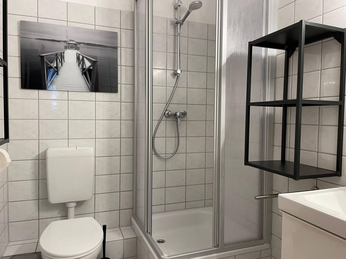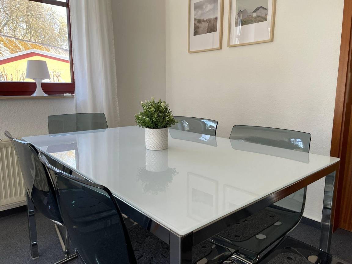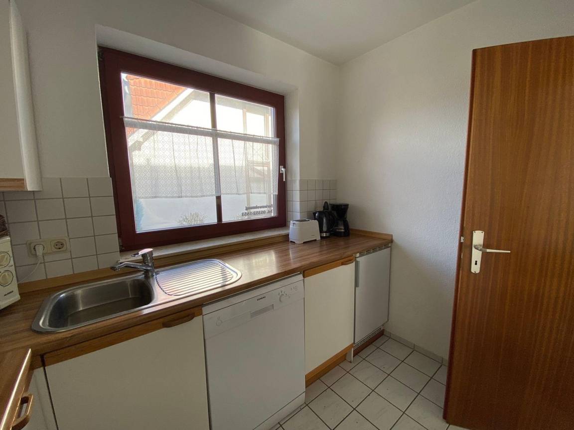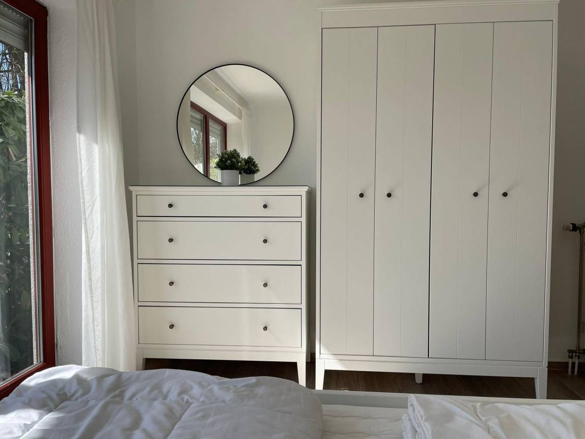 Unsere Ferienwohnung C25 "Peter Pan" ist ein 58 qm großes Dreizimmerappartement im Erdgeschoss unseres Ferienhauses mit insgesamt vier Ferienwohnungen. Die Wohnung ist im skandinavischen Stil eingerichtet. Sie ist hell und gemütlich und wurde 2023 renoviert und neu möbeliert. Sie bietet Platz für bis zu sechs Personen. Das Wohnzimmer verfügt über ein bequemes Sofa mit einem Sessel und einen Beistelltisch. Im Wohnzimmer finden sich außerdem ein Esstisch mit sechs Stühlen, ein Sideboard, ein Smart-TV, JBL Radio und ein paar schöne Lampen für indirekte, gemütliche Beleuchtung. Eine große Fensterfront mit Tür, die den Weg auf die eigene Sonnenterrasse und den Garten eröffnet, lässt viel Licht in das Wohnzimmer. Vom Wohnzimmer aus gelangt man durch einen kleinen Flur zu den zwei Schlafzimmern und dem Badezimmer. Das erste der zwei Schlafzimmer verfügt über eine große Fensterfront mit Tür, die das Zimmer mit Licht durchflutet und den Weg auf die zweite Terrasse der Wohnung eröffnet. Das Schlafzimmer ist mit einem 160 cm breiten Doppelbett (1 Matratze) inklusive Inlets ausgestattet. Das Zimmer verfügt neben dem Bett über einen großen Kleiderschrank und eine Kommode mit Spiegel die viel Stauraum bereit halten. Das zweite Schlafzimmer ist mit einem 140 cm breiten Doppelbett (1 Matratze) inklusive Inlets und einer Kommode mit Spiegel ausgestattet. Bei Belegung der Ferienwohnung mit über vier Personen, kann das Sofa im Wohnzimmer zu einem Schlafplatz für zwei weitere Personen erweitert werden (1 Matratze, Inlets vorhanden). Darüber hinaus sind alle Fenster des Wohnzimmers und der Schlafzimmer mit Rolladen ausgestattet, die abdunkeln und isolieren. Die große lichtdurchflutete Küche im Landhausstil ist neben Ofen, Kochfeld und Kühlschrank mit einem Geschirrspüler, einer Mikrowelle, Kaffeemaschine, einem Wasserkocher und Toaster ausgestattet. Das Badezimmer verfügt über eine Dusche und hält ausreichend Abstellflächen bereit. Im Keller der Ferienwohnung befinden sich ein Grill, ein Sonnenschirm, ein Baby-Reisebett, ein Kinderhochstuhl, Sandspielzeug und ein Kinderwagen.