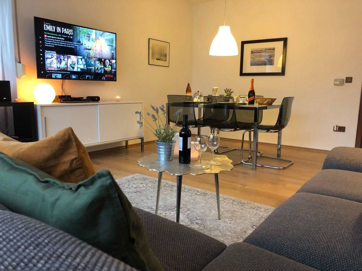 Die Wohnung verfügt über W-Lan, welches kostenfrei genutzt werden kann. Bitte beachten Sie, dass der Internetempfang in Abhängigkeit der Anzahl der Nutzer und der abgerufenen Datenmengen varieren kann.