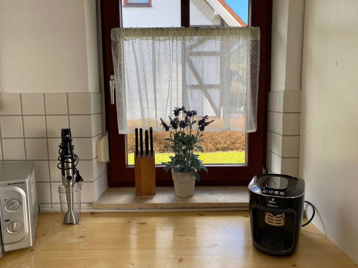 Unsere Ferienwohnung B14 "Kapitän Hook" ist ein 60 qm großes Dreizimmerappartement im Erdgeschoss eines Ferienhauses in der Ferienwohnanlage in Gustow. Die Wohnung ist im skandinavischen Stil eingerichtet. Sie ist hell und gemütlich und wurde 2022 renoviert und neu möbeliert. Sie bietet Platz für bis zu sechs Personen. Das Wohnzimmer verfügt über ein bequemes Sofa mit einem Sessel und einen Beistelltisch. Im Wohnzimmer finden sich außerdem ein Esstisch mit sechs Stühlen, ein Sideboard, ein Smart-TV, ein DVD-Player, eine Nintendo Wii, eine Playstation 2, ein JBL Radio und ein paar schöne Lampen für indirekte, gemütliche Beleuchtung. Eine große Fensterfront mit Tür, die den Weg auf die eigene Sonnenterrasse und den eigenen Garten eröffnet, lässt viel Licht in das Wohnzimmer. Vom Wohnzimmer aus gelangt man durch einen kleinen Flur zu den zwei Schlafzimmern und dem Badezimmer. Das erste der zwei Schlafzimmer verfügt über eine große Fensterfront mit Tür, die das Zimmer mit Licht durchflutet und den Weg auf die zweite Terrasse der Wohnung eröffnet. Das Schlafzimmer ist mit einem 180 cm breiten Doppelbett (2 Matratzen von je 90 cm Breite) inklusive Inlets ausgestattet. Das Zimmer verfügt neben dem Bett über einen großen Kleiderschrank, der viel Stauraum bereit hält, und einen Ablagetisch mit Spiegel. Das zweite Schlafzimmer ist mit einem 140 cm breiten Doppelbett (1 Matratze) inklusive Inlets, einem Kleiderschrank und einer Kommode mit Spiegel ausgestattet. Bei Belegung der Ferienwohnung mit über vier Personen, kann das Sofa im Wohnzimmer zu einem Schlafplatz für zwei weitere Personen erweitert werden (1 Matratze, Inlets vorhanden). Darüber hinaus sind alle Fenster des Wohnzimmers und der Schlafzimmer mit Rolladen ausgestattet, die abdunkeln und isolieren. Die große lichtdurchflutete Küche im Landhausstil ist neben Ofen, Kochfeld und Kühlschrank mit einem Geschirrspüler, einer Mikrowelle, zwei verschiedenen Kaffeemaschinen, einem Wasserkocher und Toaster ausgestattet. Das Badezimmer verfügt über eine Dusche und hält ausreichend Abstellflächen bereit. In der Wohnung befinden sich außerdem ein Wäscheständer, ein Bügelbrett mit Bügeleisen, ein Kinder-Reisebett, ein Kinder-Hochstuhl und eine große Auswahl an Spielen und Spielsachen.