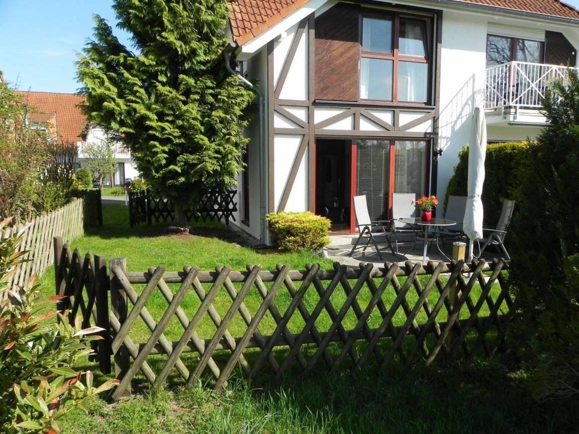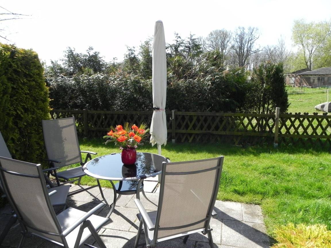 Ein Highlight unserer Ferienwohnung "Kapitän Hook" ist der große eigene Garten mit zwei Sonnenterrassen. Die Terrassen sind mit einem modernen Tisch und vier bequemen Stühlen ausgestattet. Der Garten ist zu den Seiten in Büsche und Sträucher eingebettet, die zugleich für Sichtschutz sorgen. Zusätzlich ist der Garten von einem Holzzaun umgeben. Von den Terrassen aus eröffnet sich der Blick in den Garten des Ferienhauses, der durch Bäume, Büsche und Sträucher zu den Nachbargrundstücken abgegrenz ist, die ebenfalls zum Sichtschutz beitragen. Darüber hinaus verfügt die Ferienwohnung über einen eigenen Parkplatz.