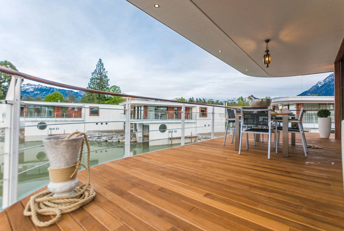 Die drei Delta Privé Collection Villen sind direkt am Thunersee zwischen Thun und Interlaken an einer exklusiven und privaten Lagune gelegen. Sie bieten nicht nur höchsten Komfort, sondern auch ein alpin-mediterranes Feriengefühl. Jede Villa verfügt über eine Wohnfläche von 180 m² mit drei Schlafzimmern mit Doppelbetten und eigenem Badezimmer. Die lichtdurchflutete Küche und das Wohnzimmer bieten eine wunderbare Panoramasicht auf den Thunersee. Ein integriertes Bootshaus mit Hebevorrichtung bietet Platz für Ihr eigenes Motorboot oder eines unserer Mietboote.