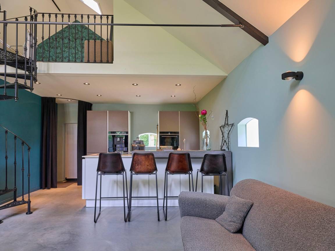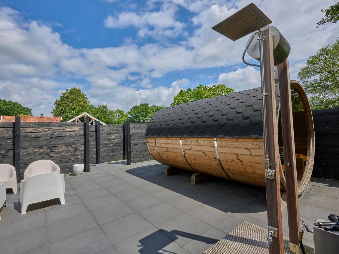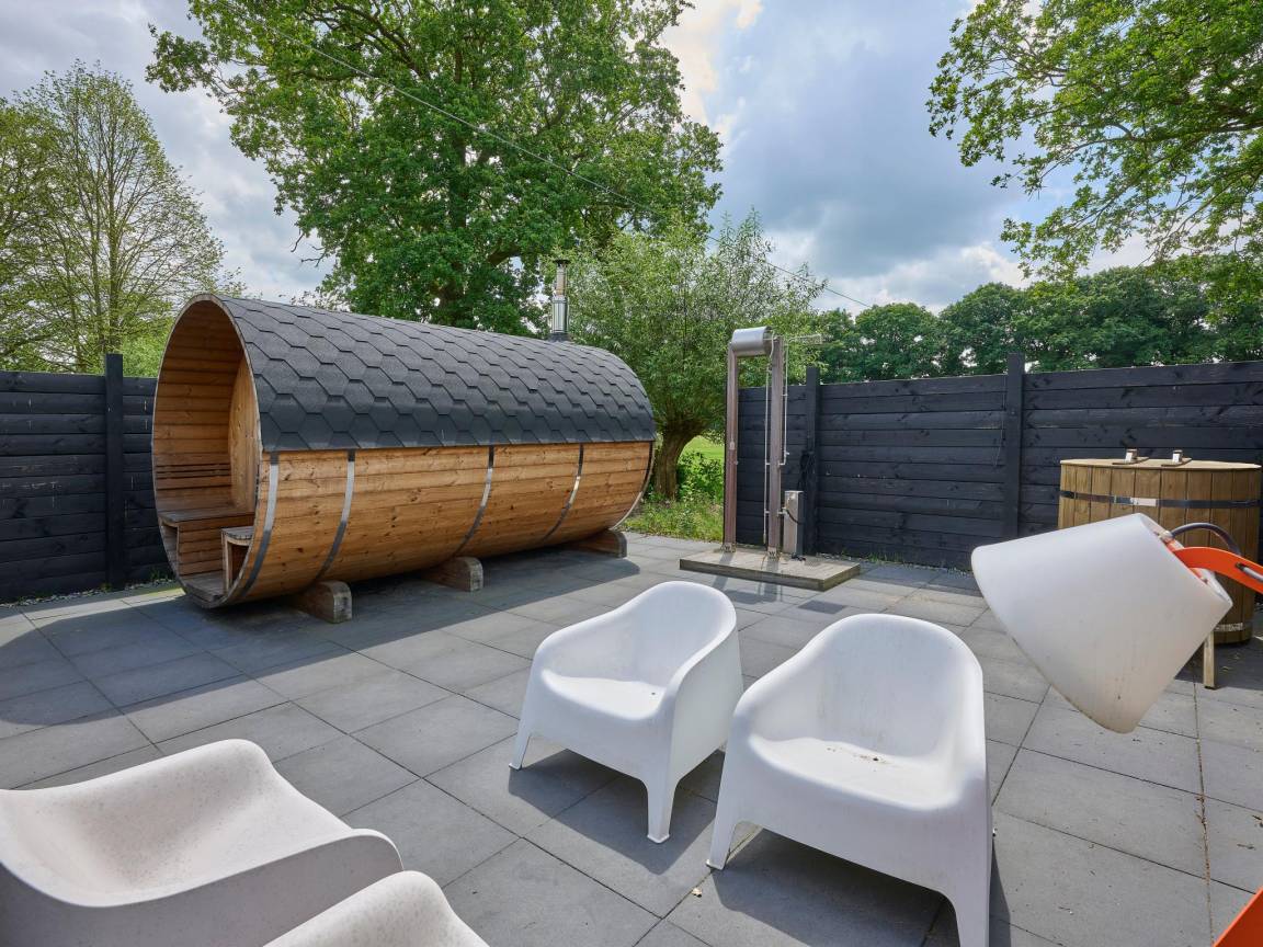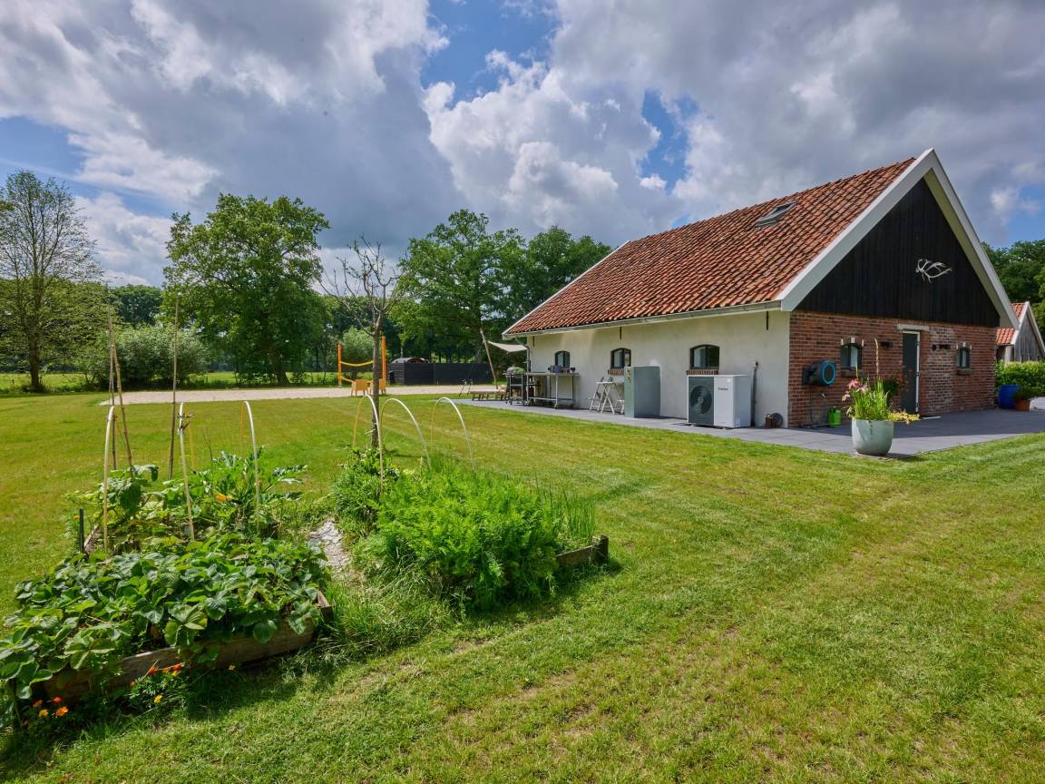 Hausbeschreibung : Zusammen mit Familie oder Freunden? Auf diesem ruhigen Anwesen im Umland von Haaksbergen buchen Sie drei stilvolle Ferienwohnungen exklusiv für Ihre Gruppe von bis zu 10 Personen (2x4P und 1x2P). Genießen Sie gemeinsam den großen Garten und die Natur, dabei hat jeder seine eigene Privatsphäre. Entspannen Sie am Holzofen, auf der Terrasse mit Grill, im Hot Tub oder in der Sauna. Viel Platz zum Spielen für Kinder und manchmal können Sie aus dem Garten Rehe oder Fasane beobachten