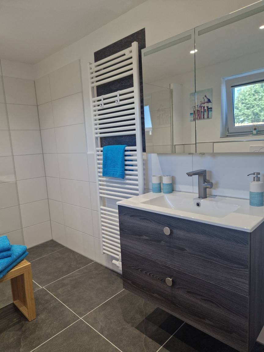Die voll ausgestattete Küchenzeile lädt dazu ein, nach Herzenslust zu kochen und zu backen. Außerdem können Sie gemütliche Grillabende auf der Terrasse genießen. Ein großes, gemütliches Bett sorgt für höchsten Komfort, während ein zusätzliches Schlafsofa flexibel für weitere Gäste genutzt werden kann. Das neue Badezimmer mit ebenerdiger Dusche, lädt zum Relaxen und Entspannen ein, was nach einem langen Tag und einer Fahrradtour eine Wohltat sein kann.