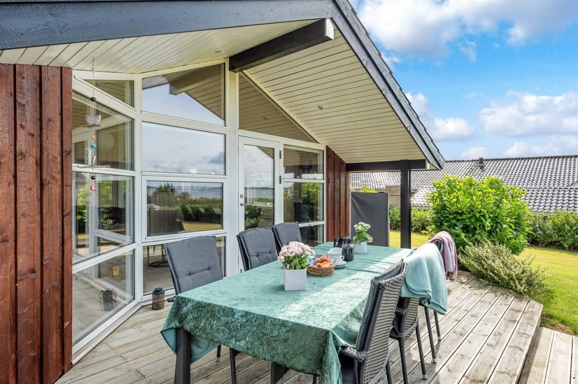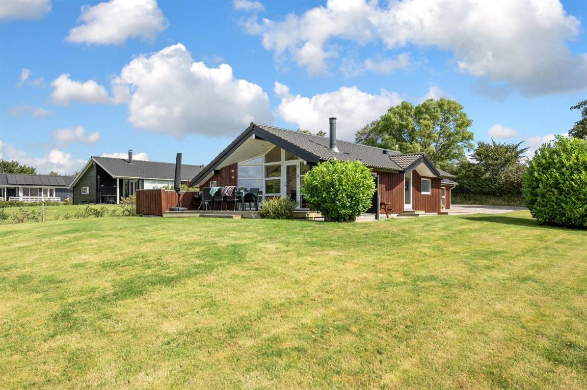 Mit einer ganz phantastischen Aussicht auf die Bucht von Helnæs liegt dieses schöne und gepflegte Ferienhaus. Sie können die Aussicht sowohl vom Haus, der Terrasse als auch von dem Grundstück aus genießen. Im Anschluss an die Terrasse liegt ein neues (2020) Gästehaus, das mit Doppelbett sowie Badezimmer mit Duschnische und Toilette eingerichtet ist. Die übrigen Schlafplätze verteilen sich auf 2 Schlafzimmer und 2 Schlafplätze im Alkoven im Wohnzimmer.