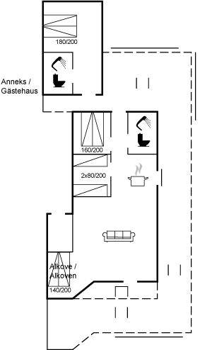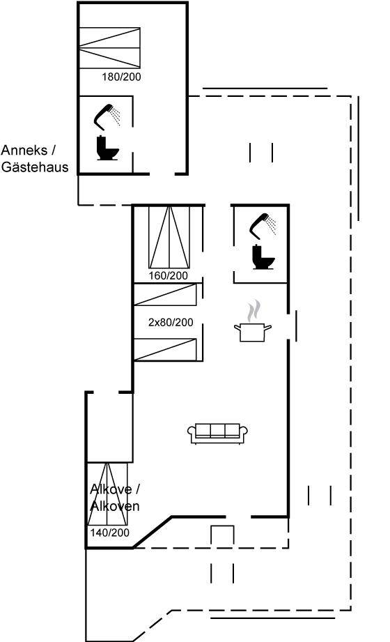 SchlafverhältnisseDie Schlafplätze verteilen sich auf 3 Schlafräume. 4 Schlafplätze in Doppelbetten. 2 Schlafplätze in Einzelbetten.2 Schlafplätze im Alkoven. 2 von diesen Schlafplätzen befinden sich im Gästehaus und 2 befinden sich im Wohnzimmer. Ferner steht ein Kinderbett zur Verfügung.