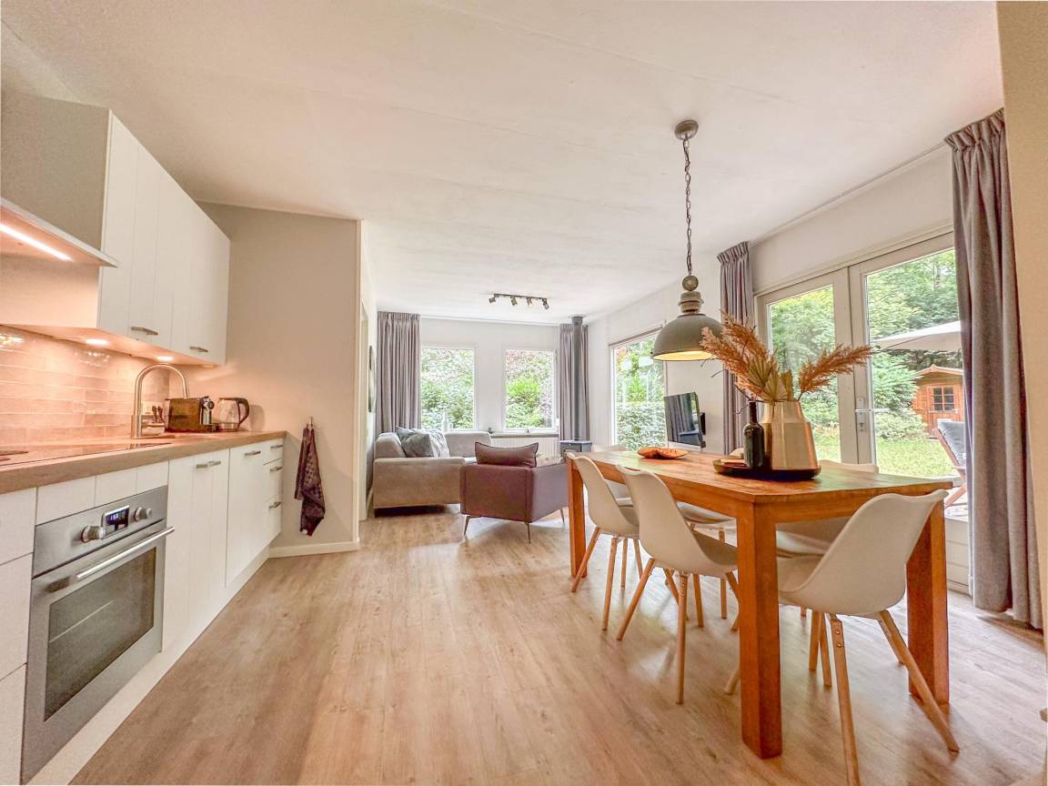 Hausbeschreibung : Mitten in Brabant, im Wald, liegt dieses freistehende Haus mit einem großen umzäunten Garten, ideal, wenn Sie mit Kindern oder Hunden reisen. Wenn Sie mit einer Tasse Kaffee auf der Terrasse sitzen, hören Sie nur die Vögel. Drinnen ist es genauso schön. Sie betreten ein helles, modernes Wohnzimmer mit großen Fenstern. Das Haus ist geschmackvoll eingerichtet und der Holzofen rundet das Ganze ab. Füllen Sie Ihre Tage mit Spaziergängen in einem der vielen nahe gelegenen Naturschutzgebieten