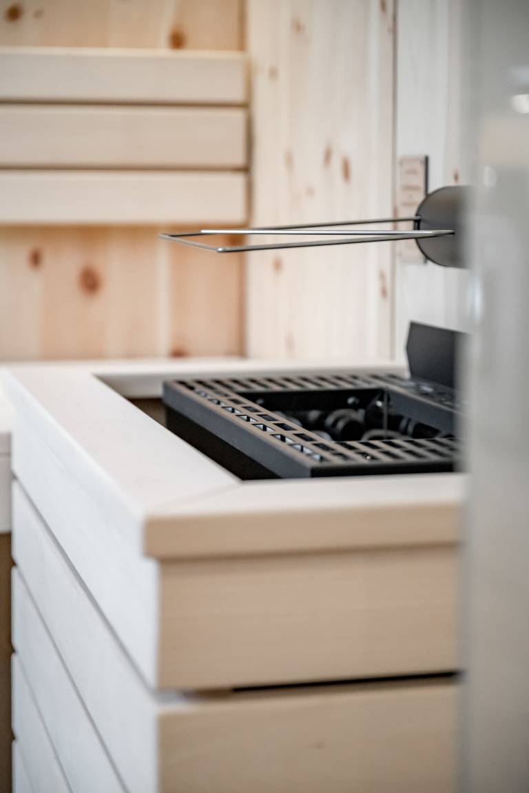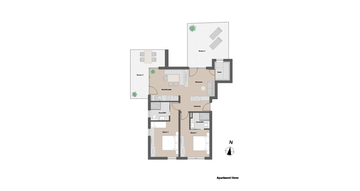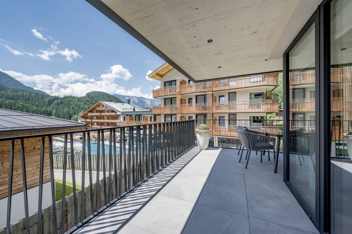 Zum Apartment № THREE gehören zwei Terrassen. Eine davon ist nach Südwesten ausgerichtet, überdacht und voll möbliert, die zweite nach Nordwesten ausgerichtet und ideal zum Abkühlen nach einem heißen Saunagang.