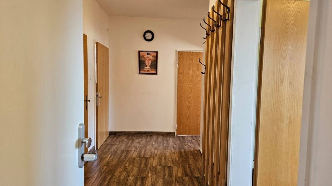 Diese Großwohnung verfügt über insgesamt 3 Zimmer, 6 Einzelbetten, 1 Schlafsofa, 1 komplett ausgestattete Küche mit Spülmaschine, 1 Badezimmer (ebenerdige Dusche), 1 separates WC, Balkon, Waschmaschine und mindestens 1 Parkplatz. Diese Wohnung ist 90 qm groß und befindet sich im 2. Stock.