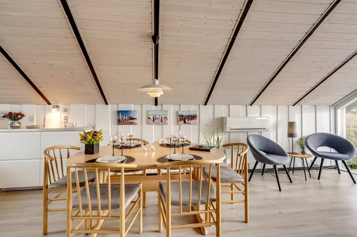 EinrichtungDas Ferienhaus eignet sich für 6 Personen sowie 1 Kleinkind bis zu 3 Jahren. Die Ferienunterkunft hat eine Wohnfläche von 78 m² und wurde 1980 gebaut. Haustiere dürfen nicht mitgebracht werden. Die Ferienunterkunft ist mit energiesparender Wärmepumpe ausgestattet. Die Ferienunterkunft ist mit Waschmaschine ausgestattet. Wäschetrockner. Tiefkühlmöglichkeit mit 90 Liter Nutzinhalt. Es gibt außerdem einen Kaminofen. Für die jüngsten Feriengäste ist 1 Kinderhochstuhl vorhanden.