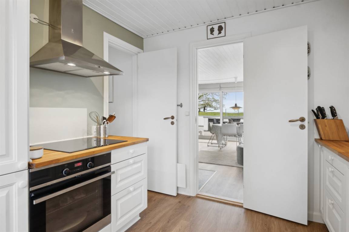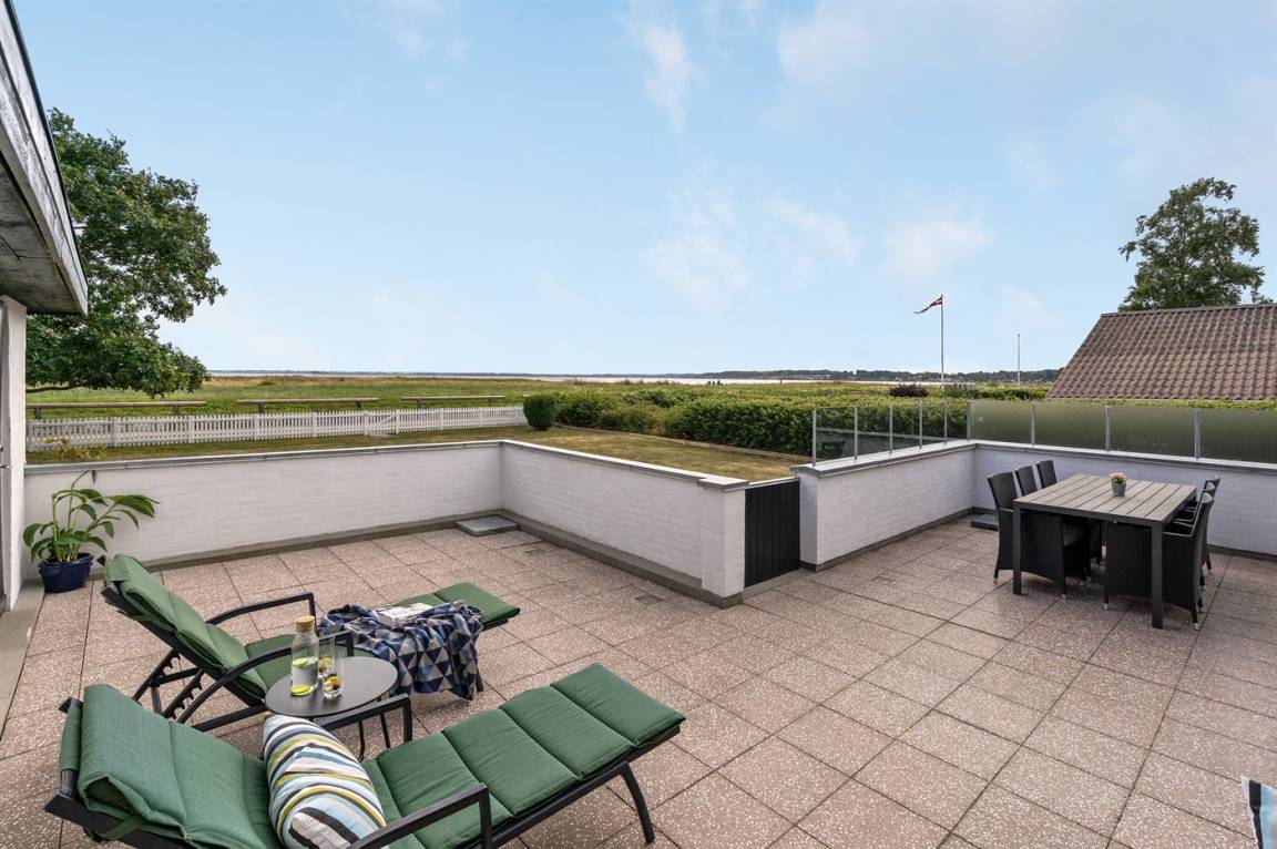 In erster Reihe zum Wasser liegt dieses schöne und gepflegte Ferienhaus mit Blick auf das Meer und die Umgebung. Auf der anderen Straßenseite gibt es einen direkten Zugang zum kinderfreundlichen Badestrand.