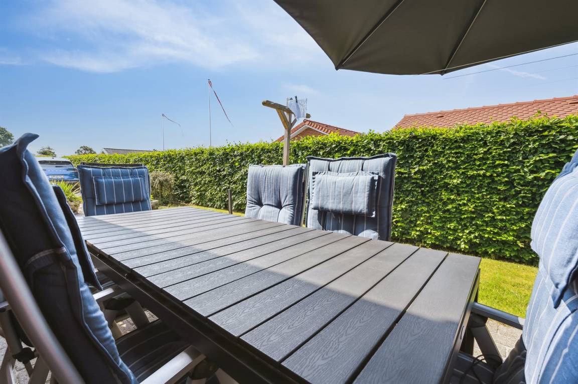 DraußenDie Ferienunterkunft liegt auf einem 850 m² großen Gartengrundstück. Die Entfernung zum Meer beträgt 300 m. Die nächste Einkaufsmöglichkeit liegt 5000 m entfernt. Es steht ein 95 m² Terrassenareal zur Verfügung. Außerdem gibt es 10 m² überdachte Terrasse. Geräteraum. Schaukel. Sandkasten. Trampolin. Es steht ein Grill zur Verfügung. Parkplatz auf dem Grundstück.