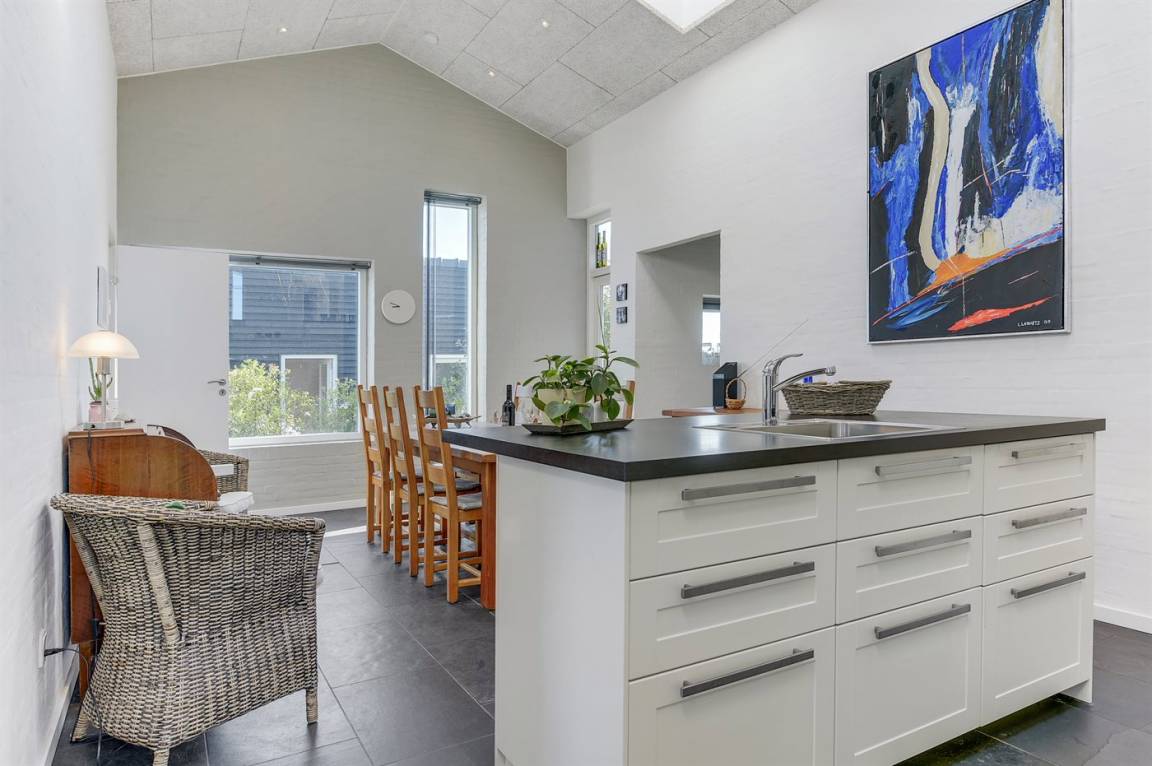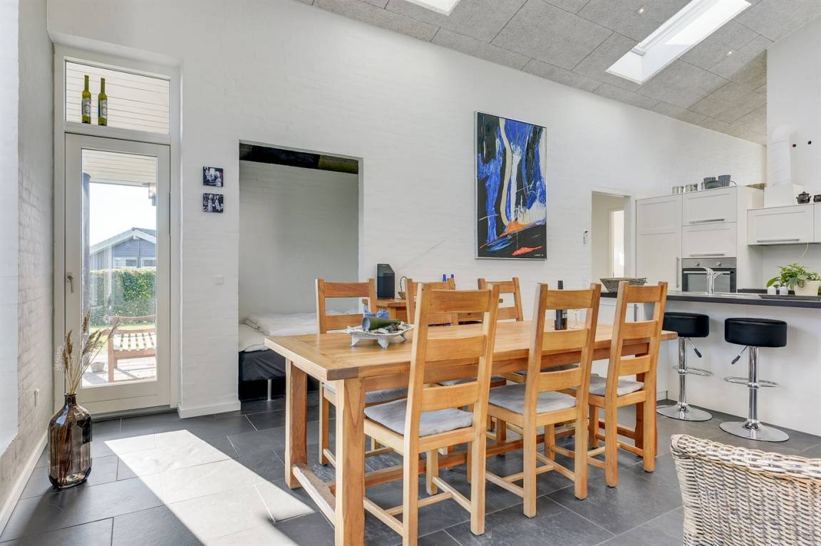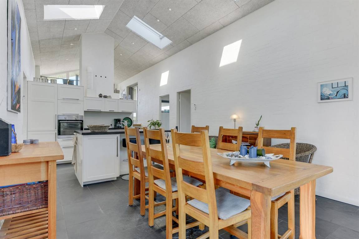 Dieses tolle Ferienhaus liegt in einer hübschen Ferienhaussiedlung am Flovt Strand. Das Haus besticht mit einer schönen Einrichtung, und durch die erhöhte Lage des Wohnzimmers haben Sie eine großartige Aussicht auf die offenen Felder und können in der Ferne sogar das Wasser erkennen. Das Haus verfügt über schöne Terrassen, auf denen Sie den ganzen Tag über die Sonne genießen können. Das Haus ist die perfekte Unterkunft für einen rundum gelungenen Urlaub mit Ausflügen in die nähere Umgebung.