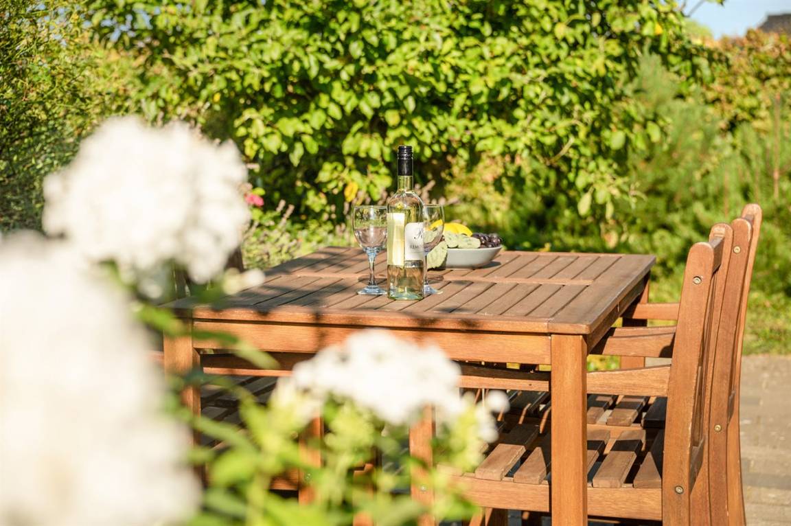DraußenDie Ferienunterkunft liegt auf einem 1252 m² großen Naturgrundstück. Die Entfernung zum Meer beträgt 500 m. Die nächste Einkaufsmöglichkeit liegt 4000 m entfernt. Sandkasten. Es steht ein Grill zur Verfügung. Parkplatz auf dem Grundstück.