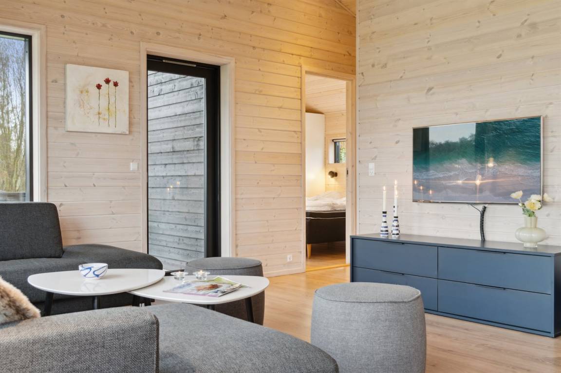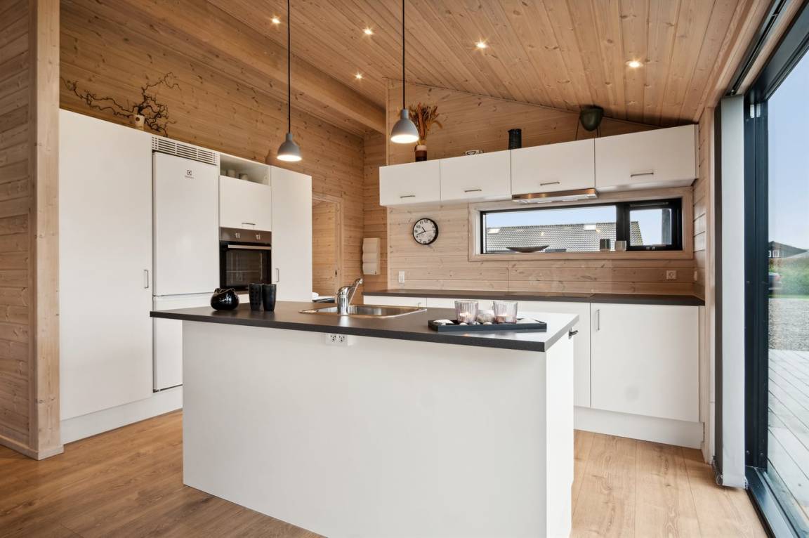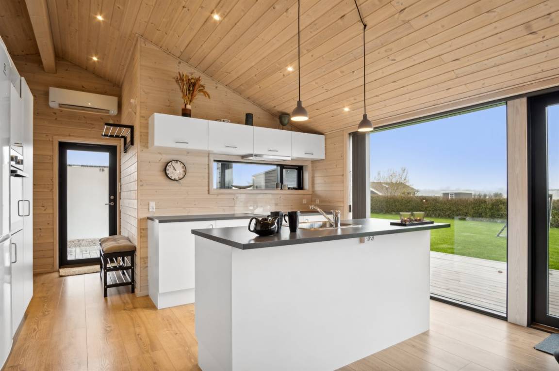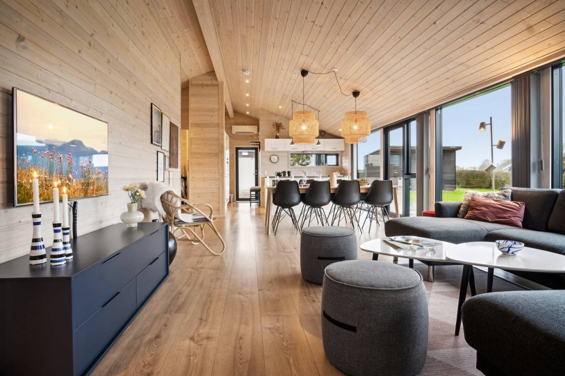 Ferienhaus im ruhigen Flovt Strand, nahe einem kinderfreundlichen Sandstrand. Das Haus wurde 2020 aus besonders hochwertigen Materialien gebaut.
