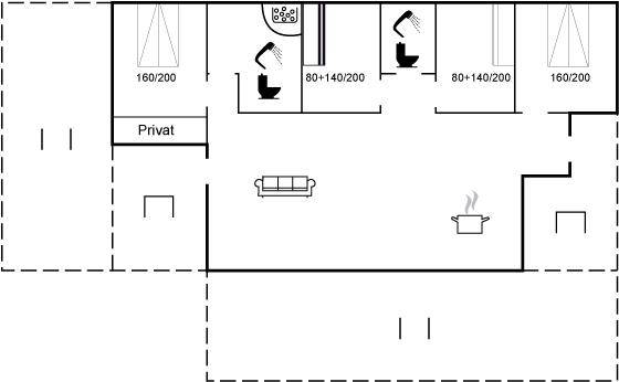 SchlafverhältnisseDie Schlafplätze verteilen sich auf 4 Schlafräume. 4 Schlafplätze in Doppelbetten. 4 Schlafplätze in Etagenbetten. Ferner steht ein Kinderbett zur Verfügung.
