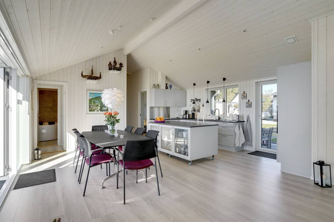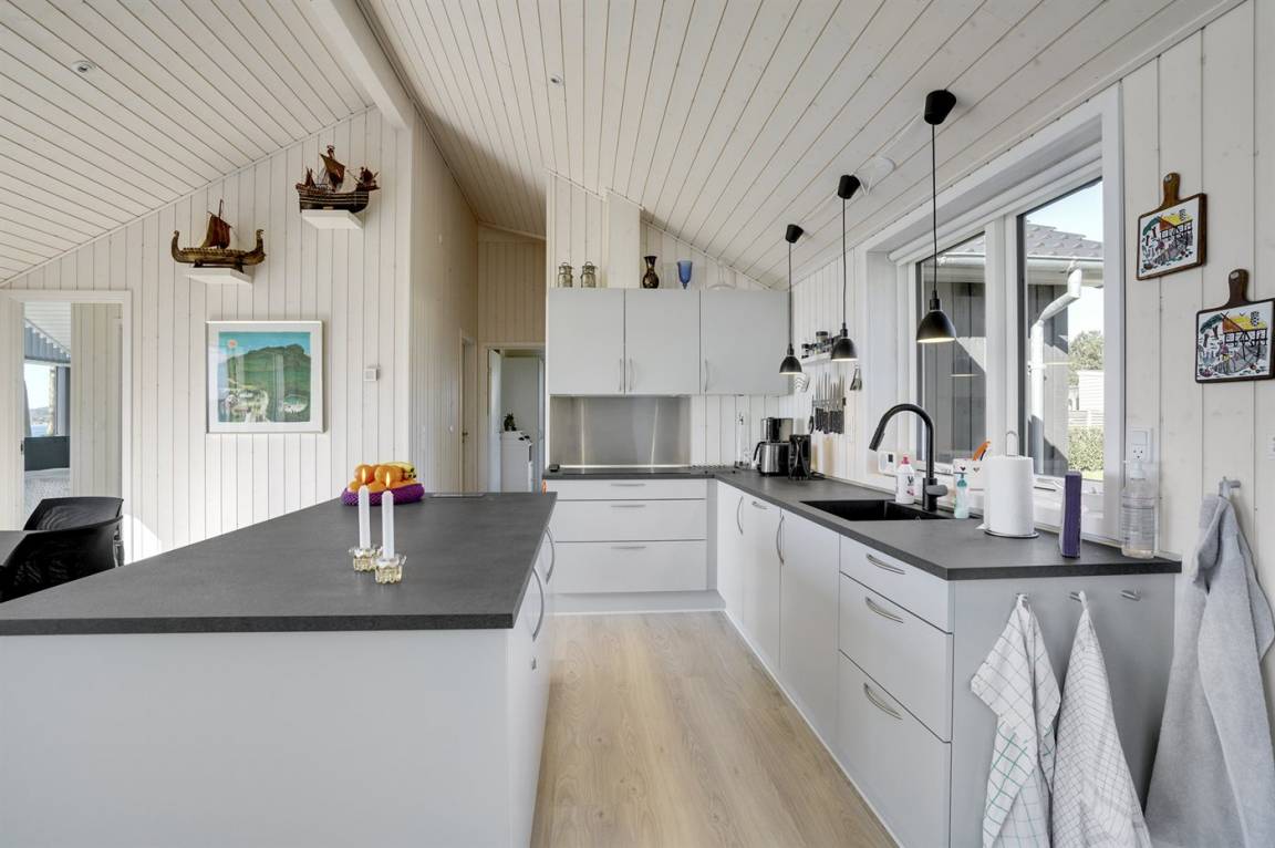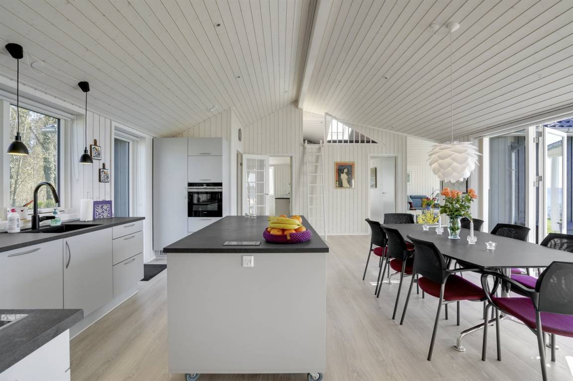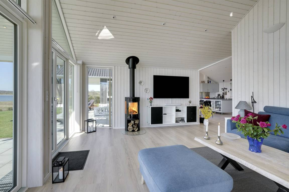 In phantastischer Lage und mit traumhafter Aussicht auf das Meer finden Sie dieses ausgesprochen schöne Ferienhaus, 2020 gebaut. Das Haus, mit seiner 168 m² großen Wohnfläche, liegt auf einem schönen Grundstück direkt am Strand und die herrliche Aussicht können Sie sowohl vom Grundstück aus, von der herrlichen und zum Teil überdachten Terrasse aus sowie vom Haus aus genießen. Das Haus ist Top-Isoliert und die 3-fach verglasten Fenster sowie die geräuscharme Luft-Wasser-Wärmepumpe mit Fußodenheizung sorgen für niedrige Energiekosten und ein gutes Innenklima.
