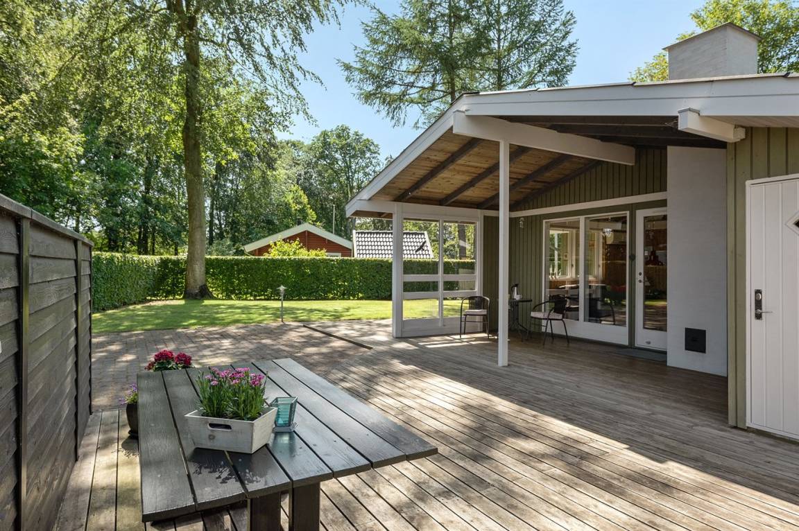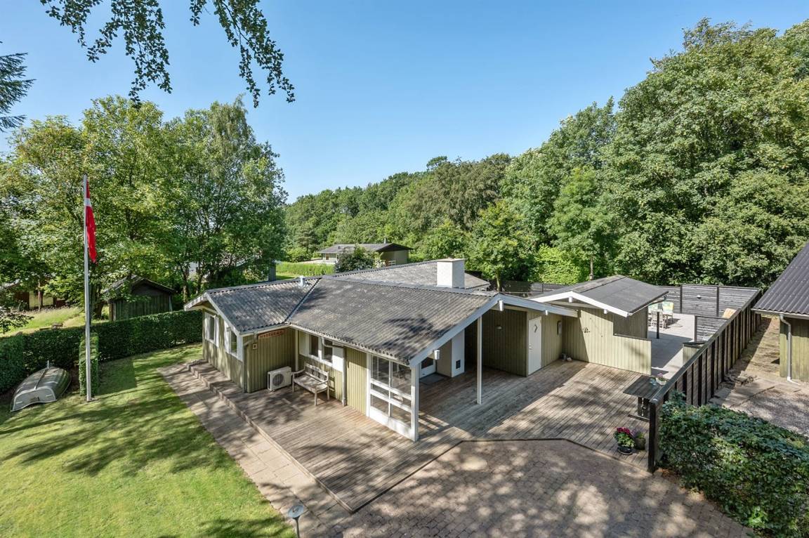 Dieses schöne Ferienhaus liegt auf einem von der Straße zurückgezogenen und ungestörten Grundstück mit mehrere Terrassen – hier können Sie es sich im Freien gemütlich machen und den Ausblick auf das Grundstück genießen. Das Haus liegt in einem ruhigen Gebiet mit schöner Natur und im Gehabstand von einem guten Badestrand entfernt.