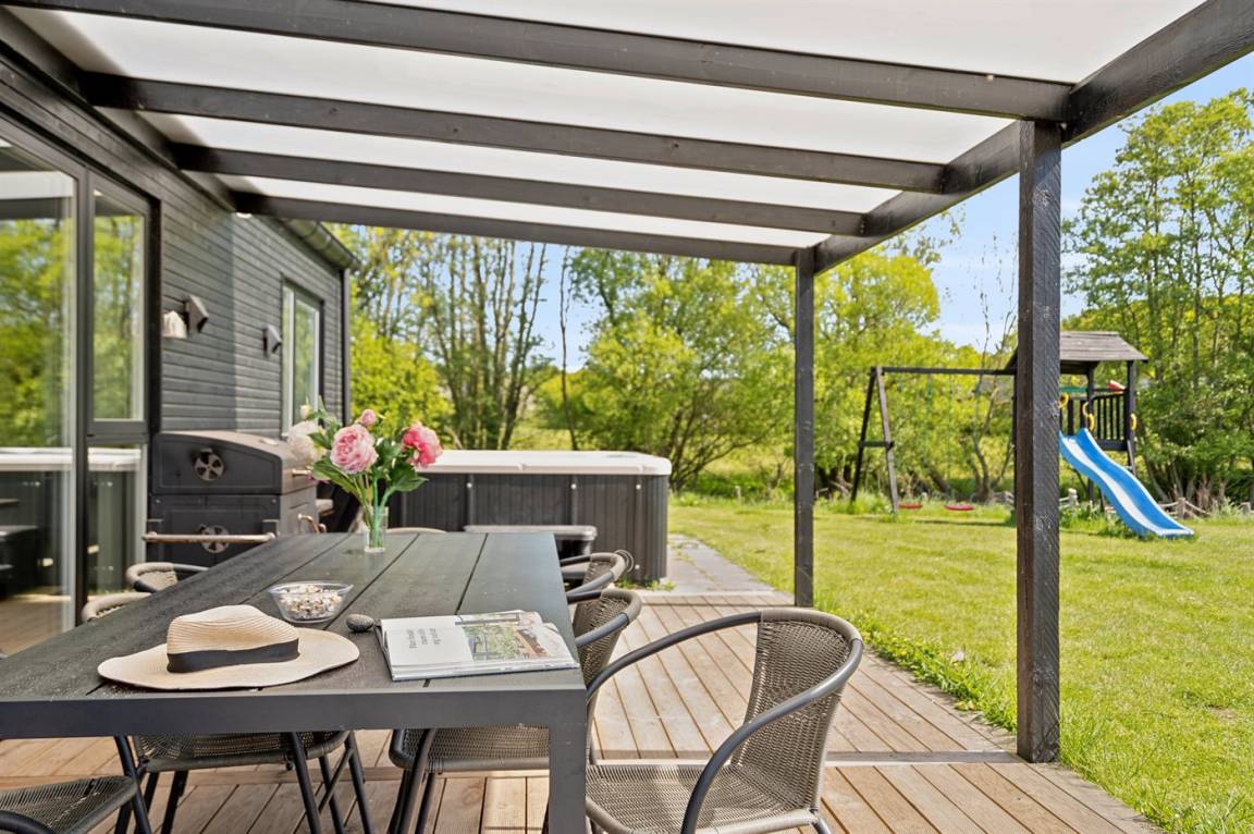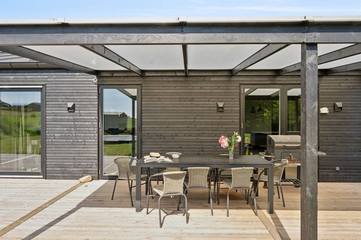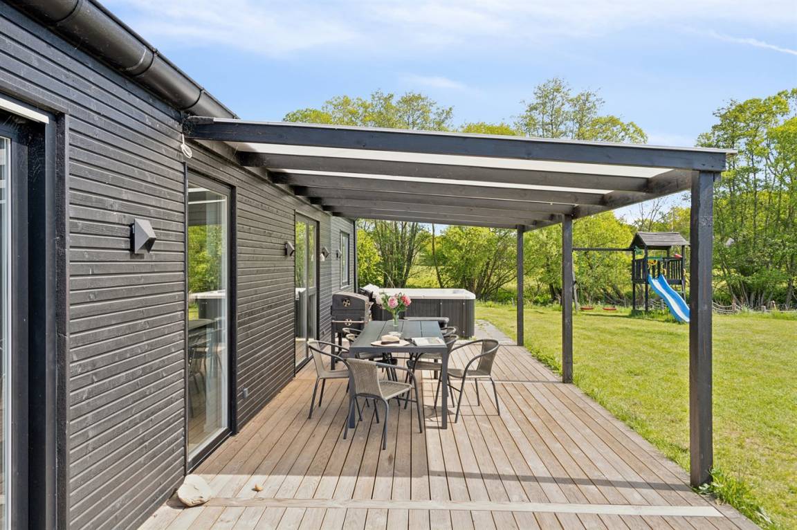DraußenDie Ferienunterkunft liegt auf einem 970 m² großen Naturgrundstück. Die Entfernung zum Meer beträgt 300 m. Die nächste Einkaufsmöglichkeit liegt 6000 m entfernt. In einem Abstand von 10000 m gibt es einen Golfplatz. Es steht ein offenes Terrassenareal zur Verfügung. Außerdem gibt es überdachte Terrasse. Trampolin. Spielturm. Es steht ein Grill zur Verfügung. Es ist ein Ladestecker für Elektroautos installiert. Ladestecker Typ 2. Mit einer Ladeleistung von 11 kW. Parkplatz auf dem Grundstück.