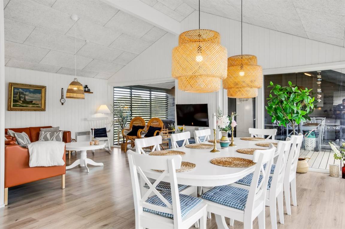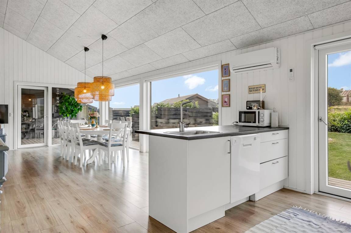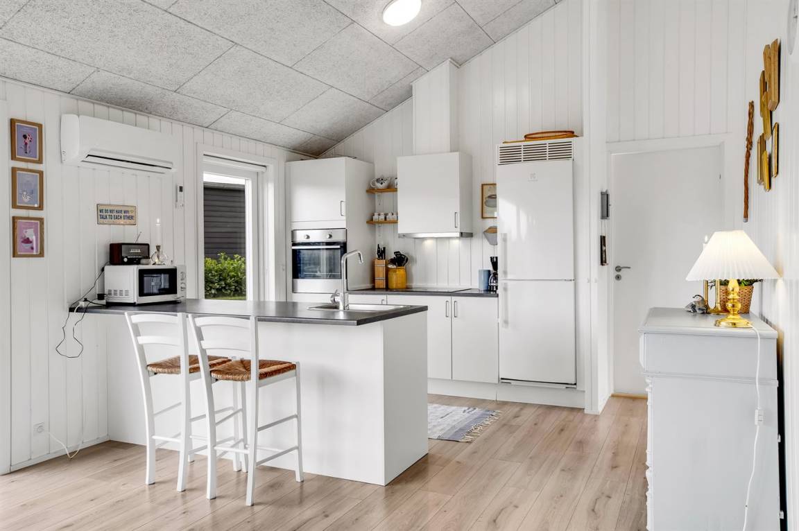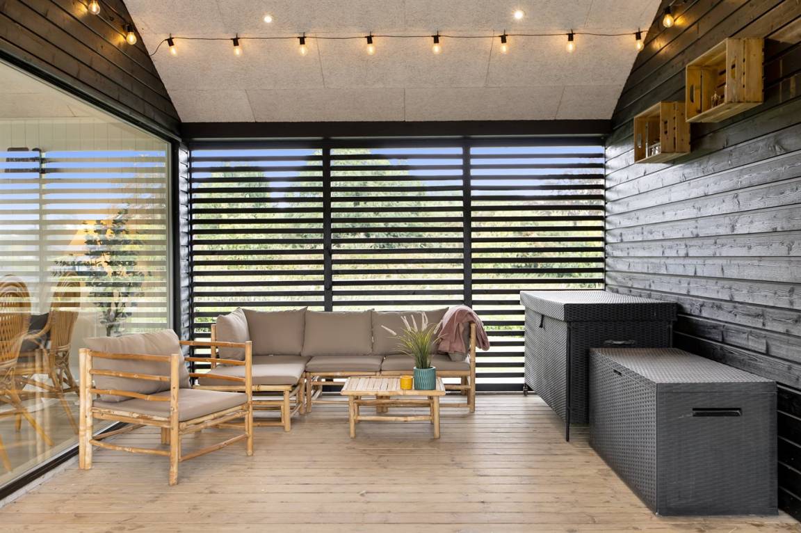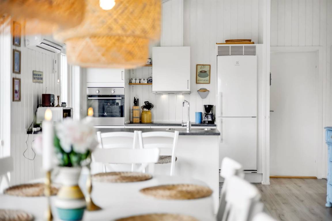 Dieses spannende Ferienhaus ist in zwei separate Bereiche unterteilt und daher besonders gut geeignet für beispielsweise zwei Familien, die gemeinsam Urlaub machen möchten, dabei aber dennoch etwas Privatsphäre schätzen. Das Haus verfügt über einer großen und gemütlichen Wohnküche, der zum gemeinsamen Kochen und Zusammensein einlädt. Zwischen den beiden Wohnbereichen befindet sich eine große überdachte Fläche, die als zusätzlicher Treffpunkt dient und das Leben im Freien bei jedem Wetter verlängert.