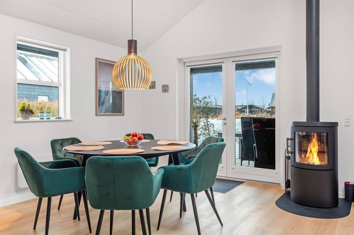 Draußen erwartet dich eine große Terrasse, perfekt für das Leben im Freien von morgens bis abends – ob beim Morgenkaffee in der Sonne, bei einer entspannten Pause am Nachmittag oder gemütlichen Sommerabende. Das Ferienhaus liegt nur 80 Meter vom Wasser und dem wunderschönen Strand von Diernæs entfernt, also denke an die Sonnencreme und Badebekleidung, bevor du deinen Koffer fertig packst.