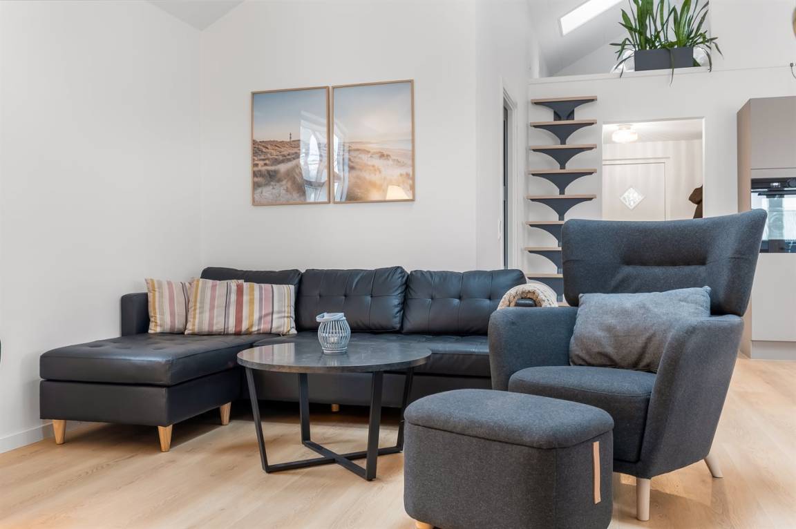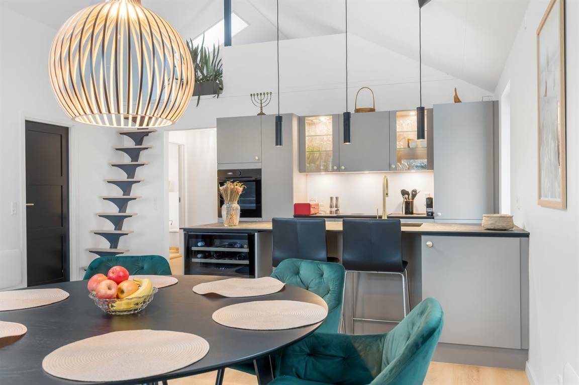 Dieses vollständig renovierte Ferienhaus in Diernæs, das hell, modern und einladend hervortritt, bietet den perfekten Rahmen für deinen nächsten Urlaub an. Es gibt einen offenen Küchen-Wohnbereich, wo Decken bis zum First für ein großzügiges Raumgefühl und ein gutes Lichteinfall sorgen, während die durchdachte Einrichtung und die exklusiven Materialien eine entspannte, luxuriöse Ferienatmosphäre schaffen.