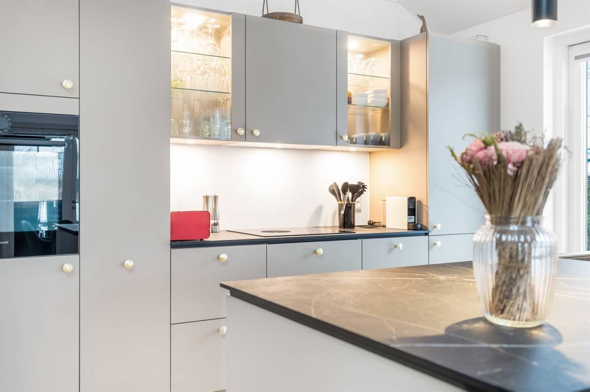 KücheDie Küche ist mit Kühlschrank ausgestattet. Außerdem gibt es 4 Induktions-Kochzonen, Umluftofen, Mikrowelle sowie Geschirrspüler.