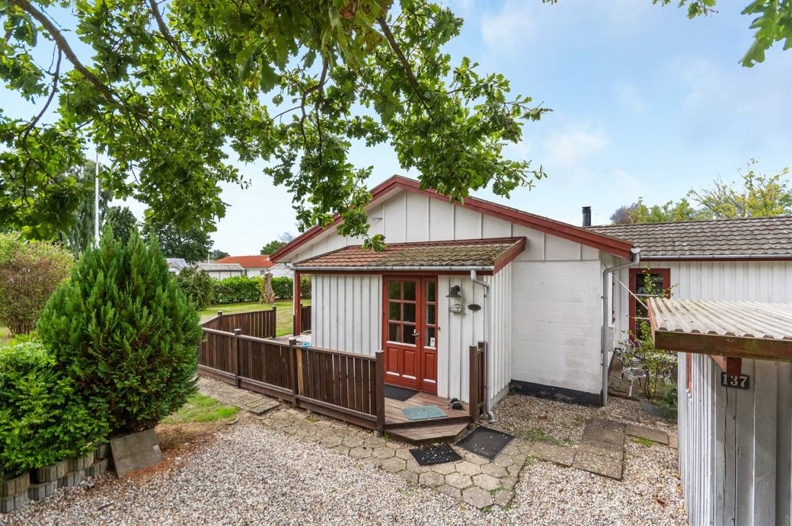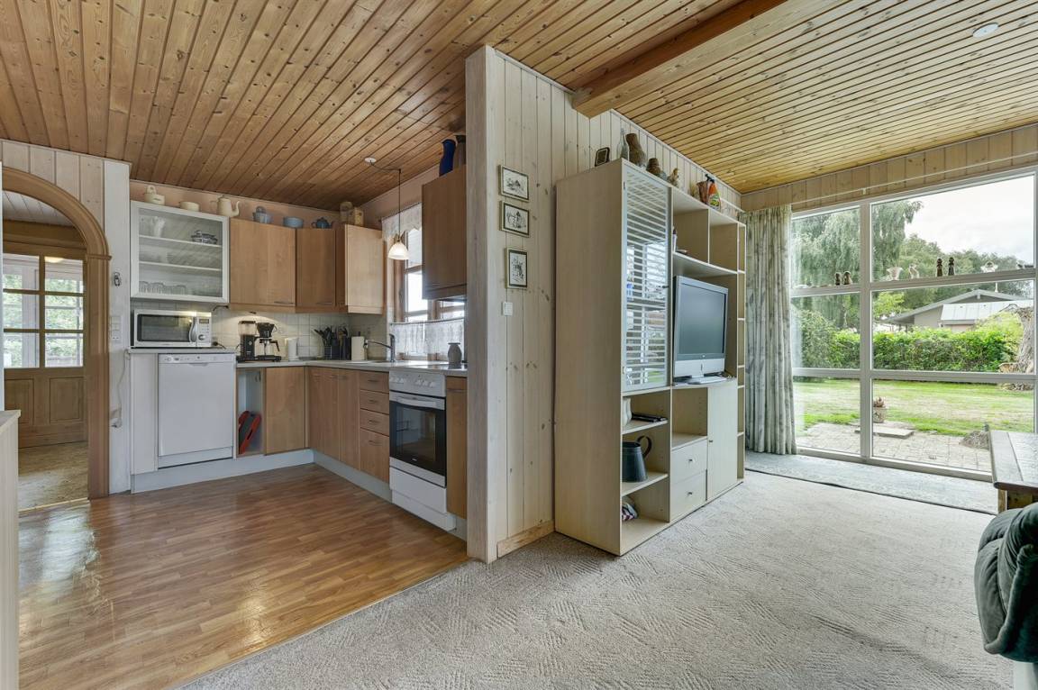 Dieses Ferienhaus liegt am Rande eines kleinen Ferienhausgebiets – dicht am Wasser in ruhiger, naturschöner Umgebung.