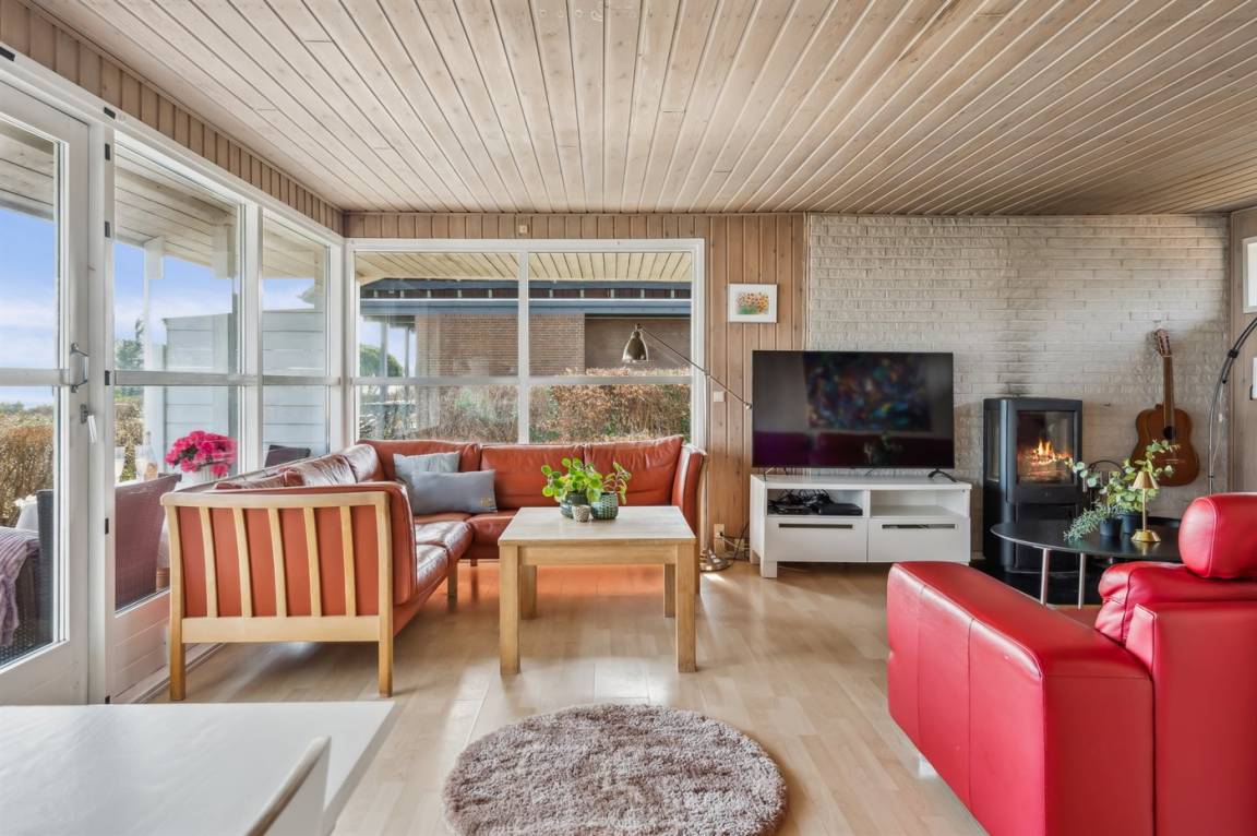 DraußenDie Ferienunterkunft liegt auf einem 2066 m² großen Naturgrundstück. Die Entfernung zum Meer beträgt 100 m. Die Entfernung zum Fjord beträgt 7700 m. Die nächste Einkaufsmöglichkeit liegt 2000 m entfernt. In einem Abstand von 15000 m gibt es einen Golfplatz. Es steht ein offenes Terrassenareal zur Verfügung. Außerdem gibt es überdachte Terrasse. Es steht ein Grill zur Verfügung. Parkplatz auf dem Grundstück.