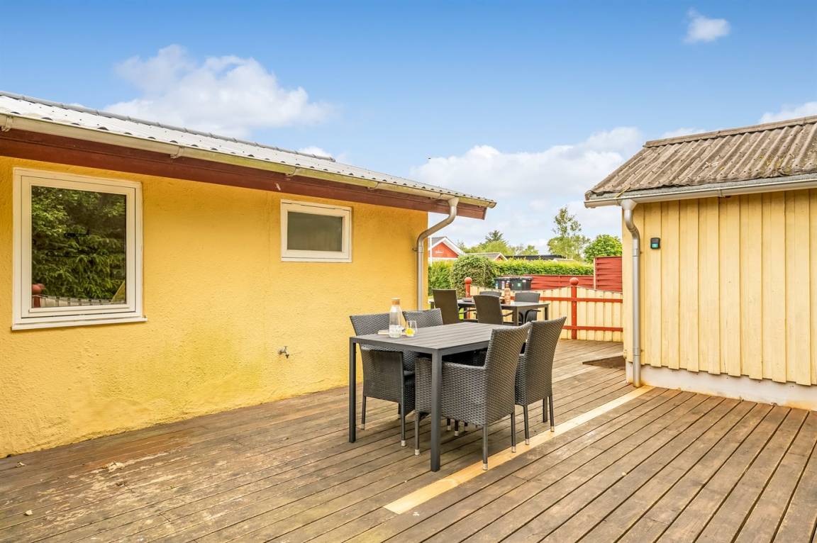 Es gibt schöne Terrassenbereiche, wo es immer möglich ist einen vor dem Wind geschützten Platz zu finden, und der Garten lädt zum Spielen ein. Das Haus liegt recht ungestört – mit anderen Worten, dieses Ferienhaus hat die perfekte Lage in Øster Hurup – in der Nähe von Strand und Stadtzentrum.