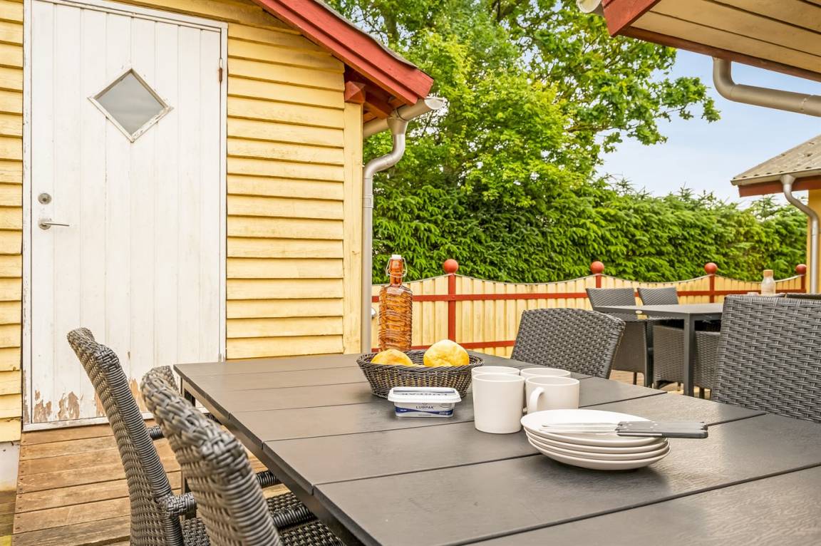 DraußenDie Ferienunterkunft liegt auf einem 500 m² großen Gartengrundstück. Die Entfernung zum Meer beträgt 225 m. Die nächste Einkaufsmöglichkeit liegt 800 m entfernt. Es steht ein offenes Terrassenareal zur Verfügung. Außerdem gibt es überdachte Terrasse. Es steht ein Grill zur Verfügung. Parkplatz auf dem Grundstück.