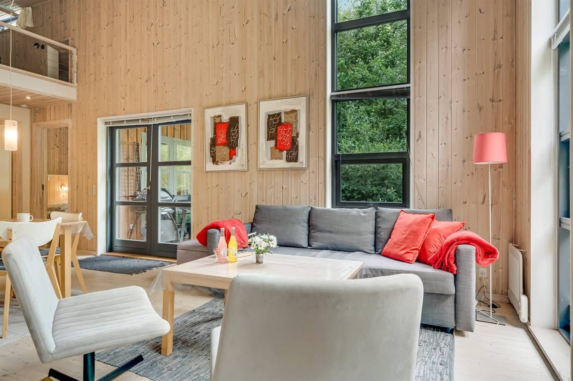 DraußenDie Ferienunterkunft liegt auf einem 1716 m² großen Naturgrundstück. Die Entfernung zum Meer beträgt 500 m. Die Entfernung zum Fjord beträgt 1700 m. Die nächste Einkaufsmöglichkeit liegt 4440 m entfernt. In einem Abstand von 13300 m gibt es einen Golfplatz. Es steht ein offenes Terrassenareal zur Verfügung. Außerdem gibt es überdachte Terrasse. Es steht ein Grill zur Verfügung. Parkplatz auf dem Grundstück.