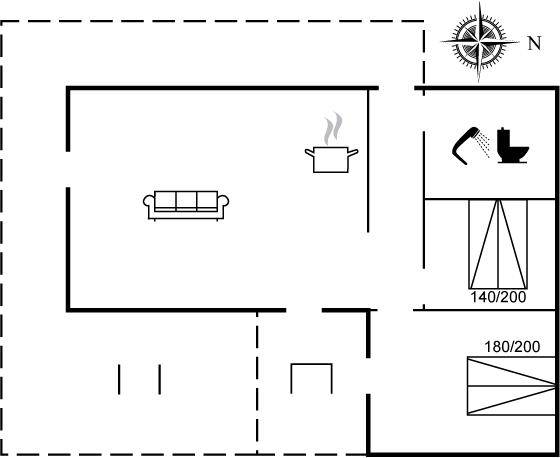 SchlafverhältnisseDie Schlafplätze verteilen sich auf 2 Schlafräume. 4 Schlafplätze in Doppelbetten. 2 Schlafplätze auf Matratzen. 2 von diesen Schlafplätzen befinden sich im offenen Obergeschoss. Ferner steht ein Kinderbett zur Verfügung.