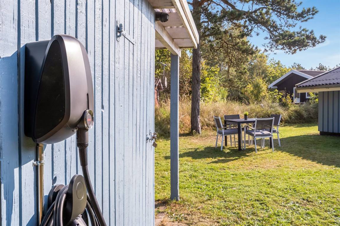 DraußenDie Ferienunterkunft liegt auf einem 1080 m² großen Naturgrundstück. Die Entfernung zum Meer beträgt 100 m. Die nächste Einkaufsmöglichkeit liegt 2000 m entfernt. Es steht ein 45 m² Terrassenareal zur Verfügung. Schaukel. Sandkasten. Es steht ein Grill zur Verfügung. Es ist ein Ladestecker für Elektroautos installiert. Ladestecker Typ 2. Mit einer Ladeleistung von 11 kW. Parkplatz auf dem Grundstück.