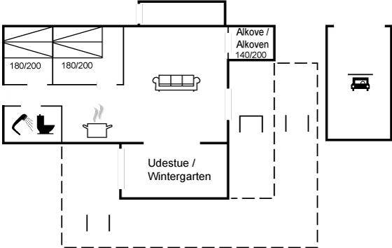 SchlafverhältnisseDie Schlafplätze verteilen sich auf 2 Schlafräume. 4 Schlafplätze in Doppelbetten.2 Schlafplätze im Alkoven. 2 von diesen Schlafplätzen befinden sich im Wohnzimmer. Ferner steht ein Kinderbett zur Verfügung.