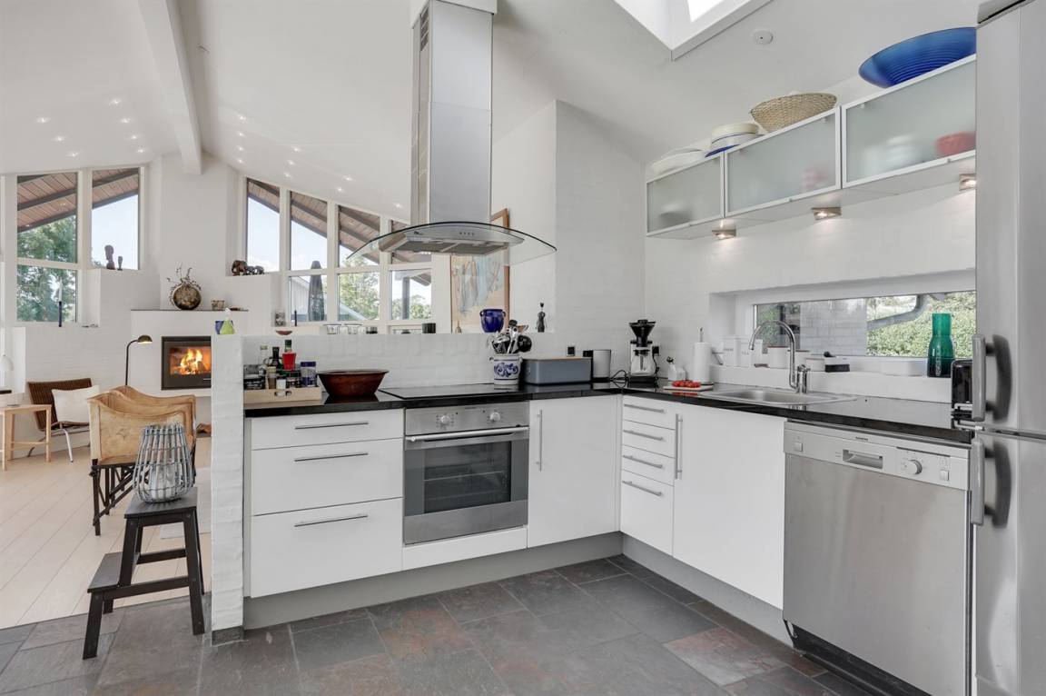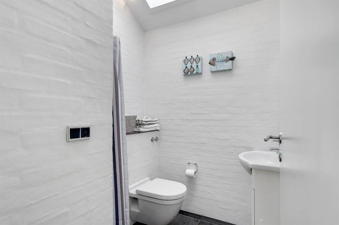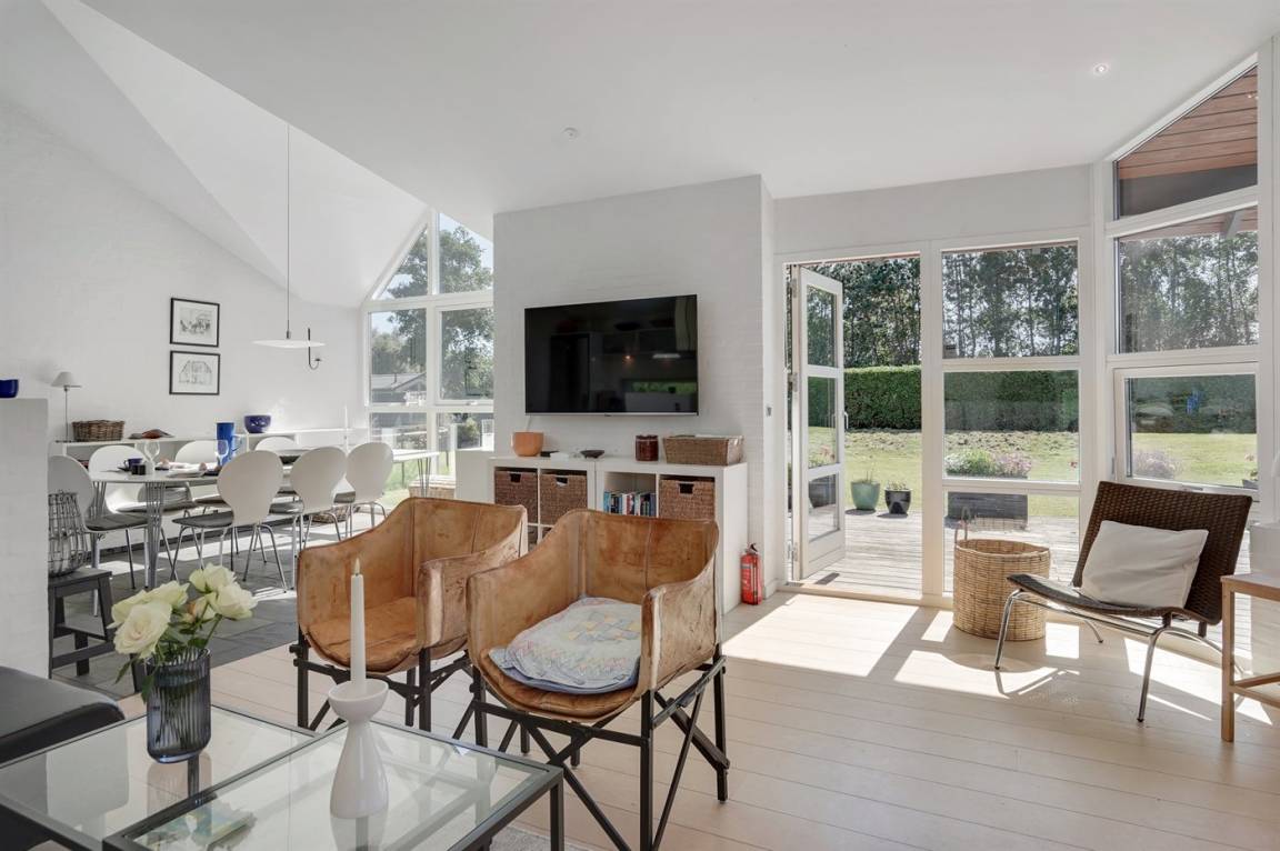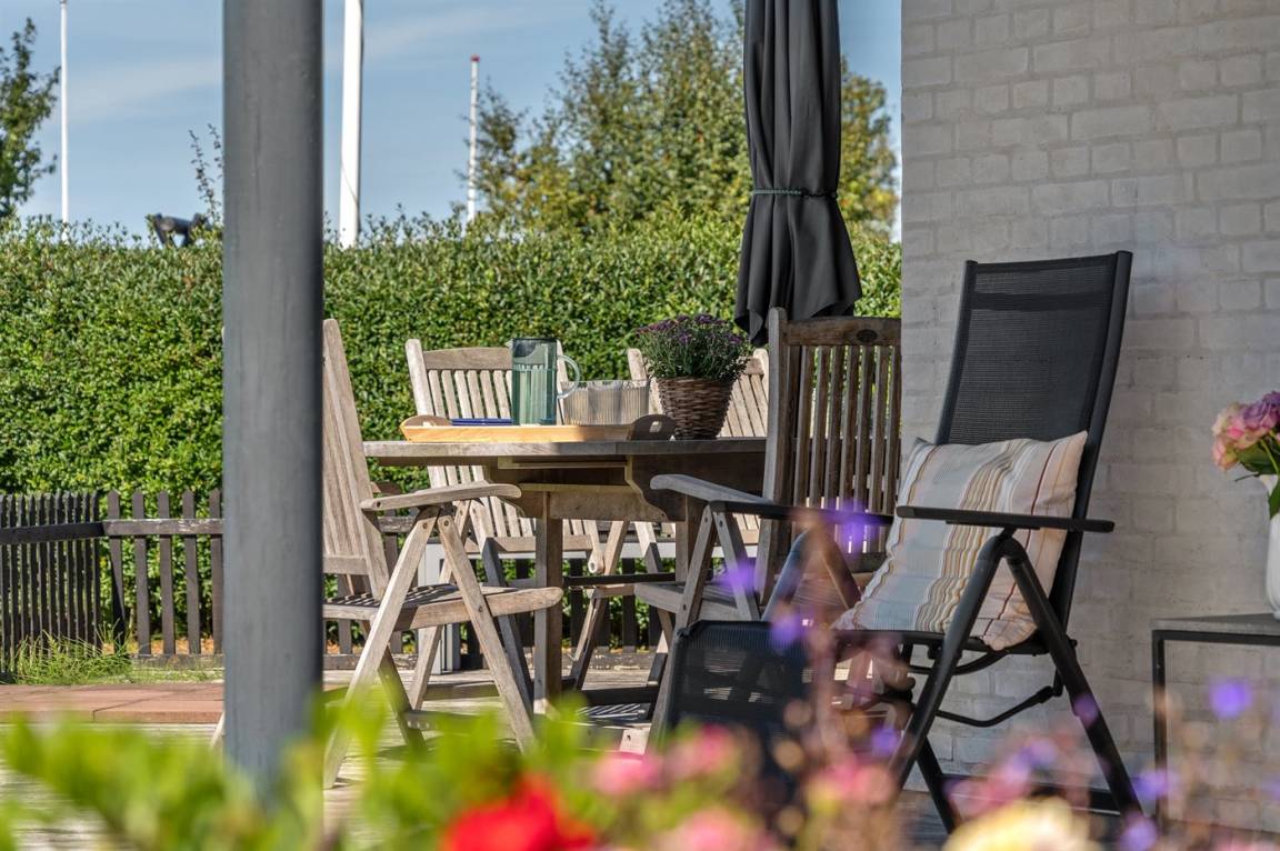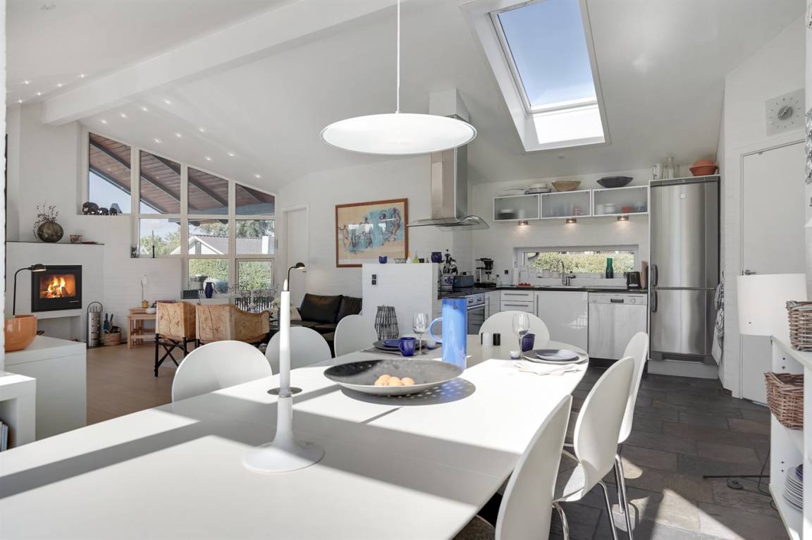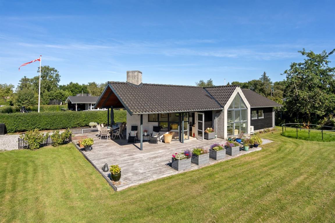 DraußenDie Ferienunterkunft liegt auf einem 823 m² großen Gartengrundstück. Die Entfernung zum Meer beträgt 350 m. Die Entfernung zum Fjord beträgt 12200 m. Die nächste Einkaufsmöglichkeit liegt 1150 m entfernt. In einem Abstand von 15800 m gibt es einen Golfplatz. Es steht ein offenes Terrassenareal zur Verfügung. Außerdem gibt es überdachte Terrasse. Trampolin. Es steht ein Grill zur Verfügung. Es ist ein Ladestecker für Elektroautos installiert. Parkplatz auf dem Grundstück.