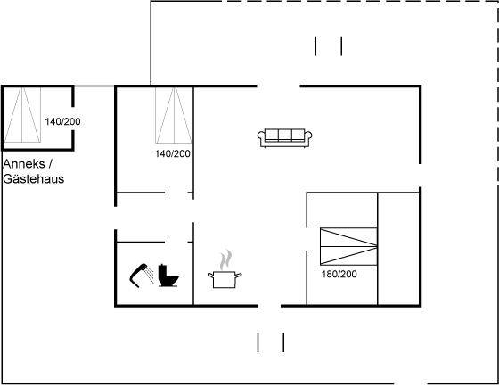 SchlafverhältnisseDie Schlafplätze verteilen sich auf 3 Schlafräume. 6 Schlafplätze in Doppelbetten. 2 von diesen Schlafplätzen befinden sich im Gästehaus.
