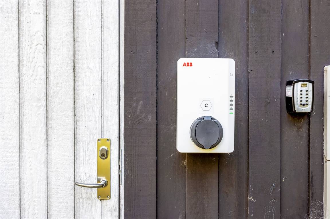 Ein Ferienhaus mit Whirlpool, Sauna und Ladestecker für das E-Auto.