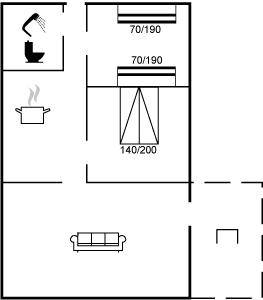 Eine funktionelle Küche mit u. a. Mikrowelle und Tiefkühlgerät. Gemütlich eingerichtetes Wohnzimmer mit Essplatz und TV. Die Schlafplätze verteilen sich auf 1 Zimmer mit Doppelbett sowie 1 Zimmer mit 2 Etagenbetten. Badezimmer mit Fußbodenheizung und Dusche. Für die jüngsten Feriengäste steht ein Kinderhochstuhl zur Verfügung.