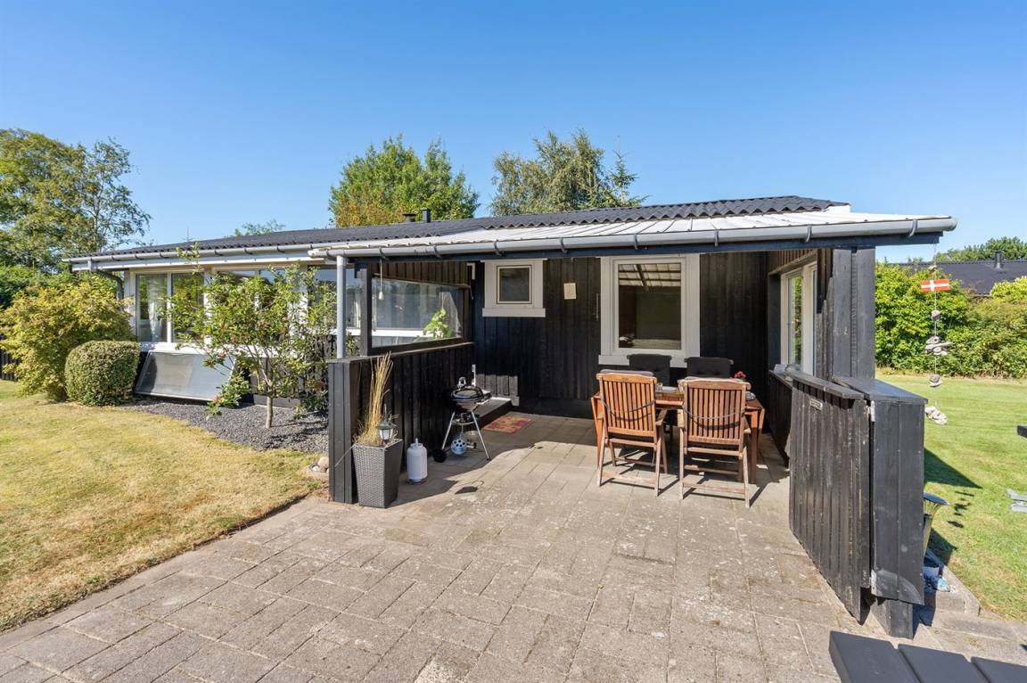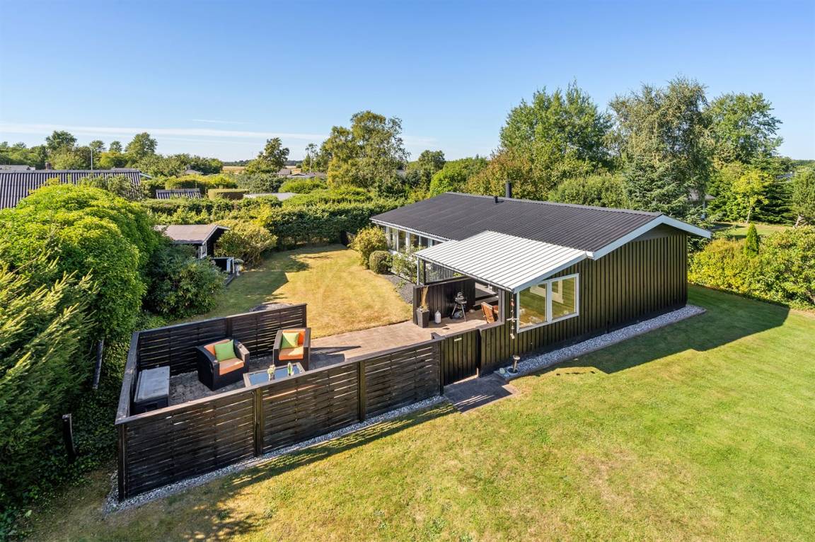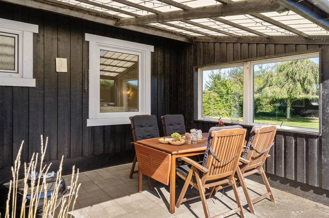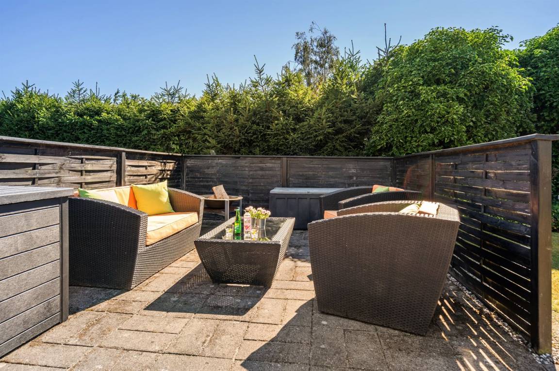 DraußenDie Ferienunterkunft liegt auf einem 945 m² großen Naturgrundstück. Das Grundstück ist eingezäunt. Die Entfernung zum Meer beträgt 640 m. Die Entfernung zum Fjord beträgt 12380 m. Die nächste Einkaufsmöglichkeit liegt 1290 m entfernt. In einem Abstand von 15150 m gibt es einen Golfplatz. Es steht ein offenes Terrassenareal zur Verfügung. Außerdem gibt es überdachte Terrasse. Parkplatz auf dem Grundstück.