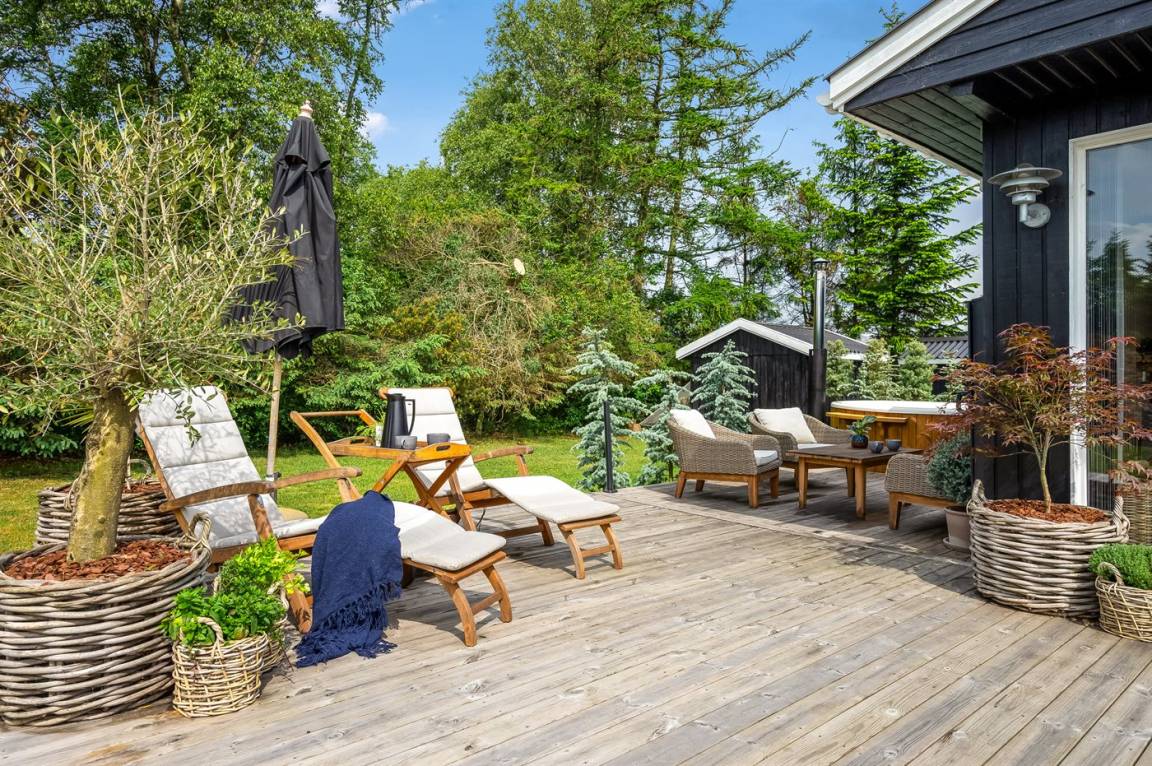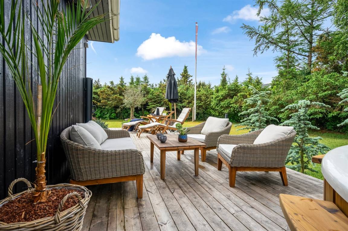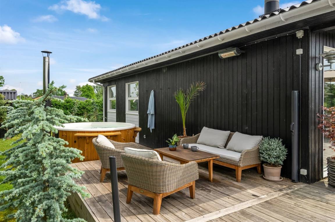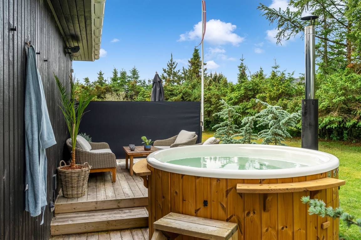 Auf der besonders schönen und großen Terrasse steht im Zeitraum von der 26 KW bis zur 34 KW ein Outdorr-Whirlpool (Standwasser) zur Verfügung. Übrigens: 2 der insgesamt 6 Schlafplätze befinden sich in einem Gästehaus auf dem Grundstück.